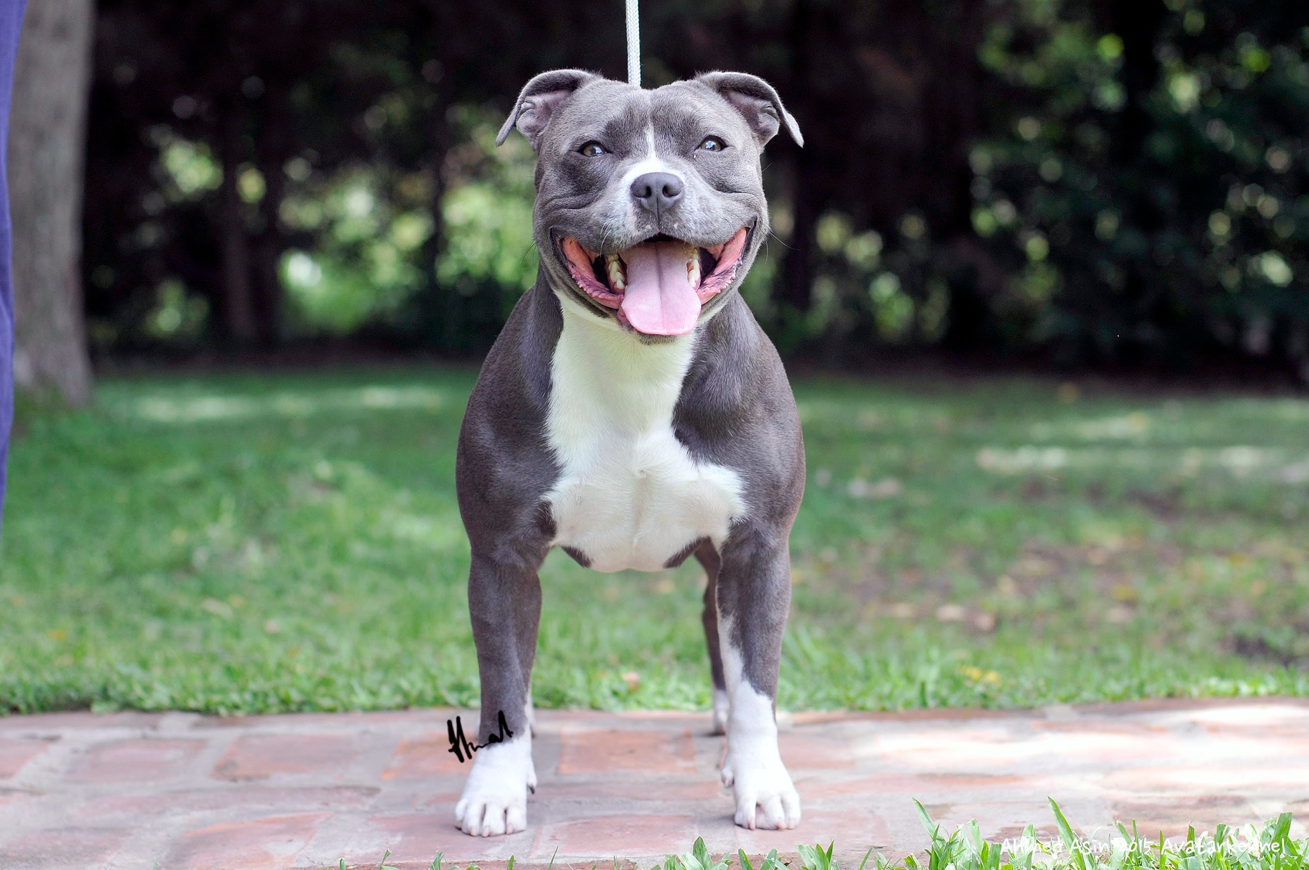 Американский стаффордширский терьер голубого окраса улыбка