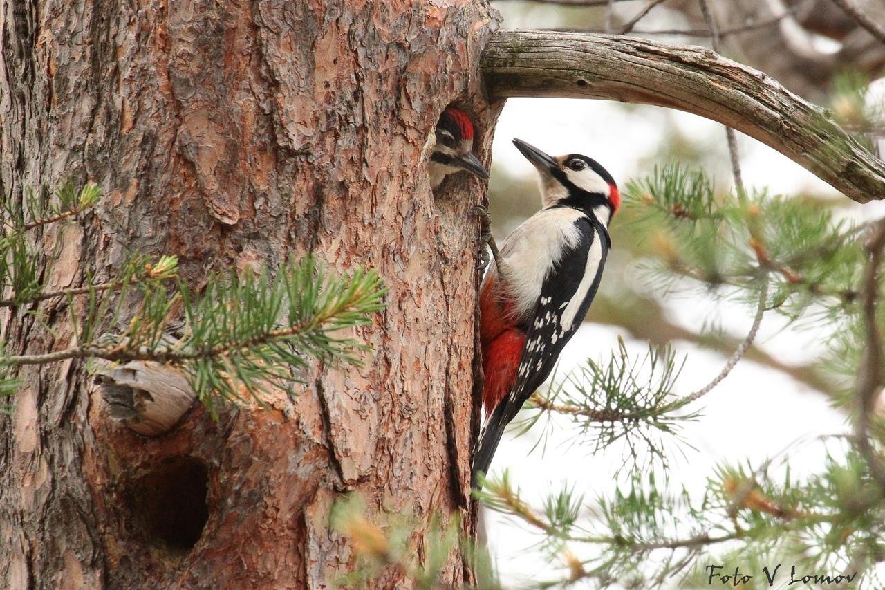 Большой пестрый дятел гнездо