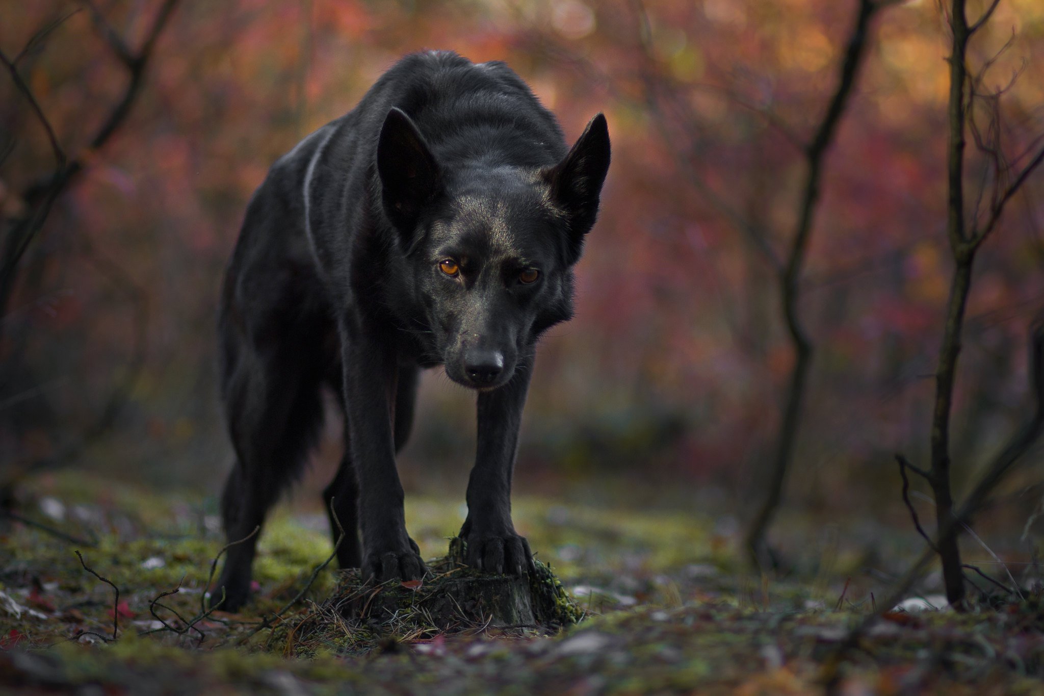Собака в темном лесу