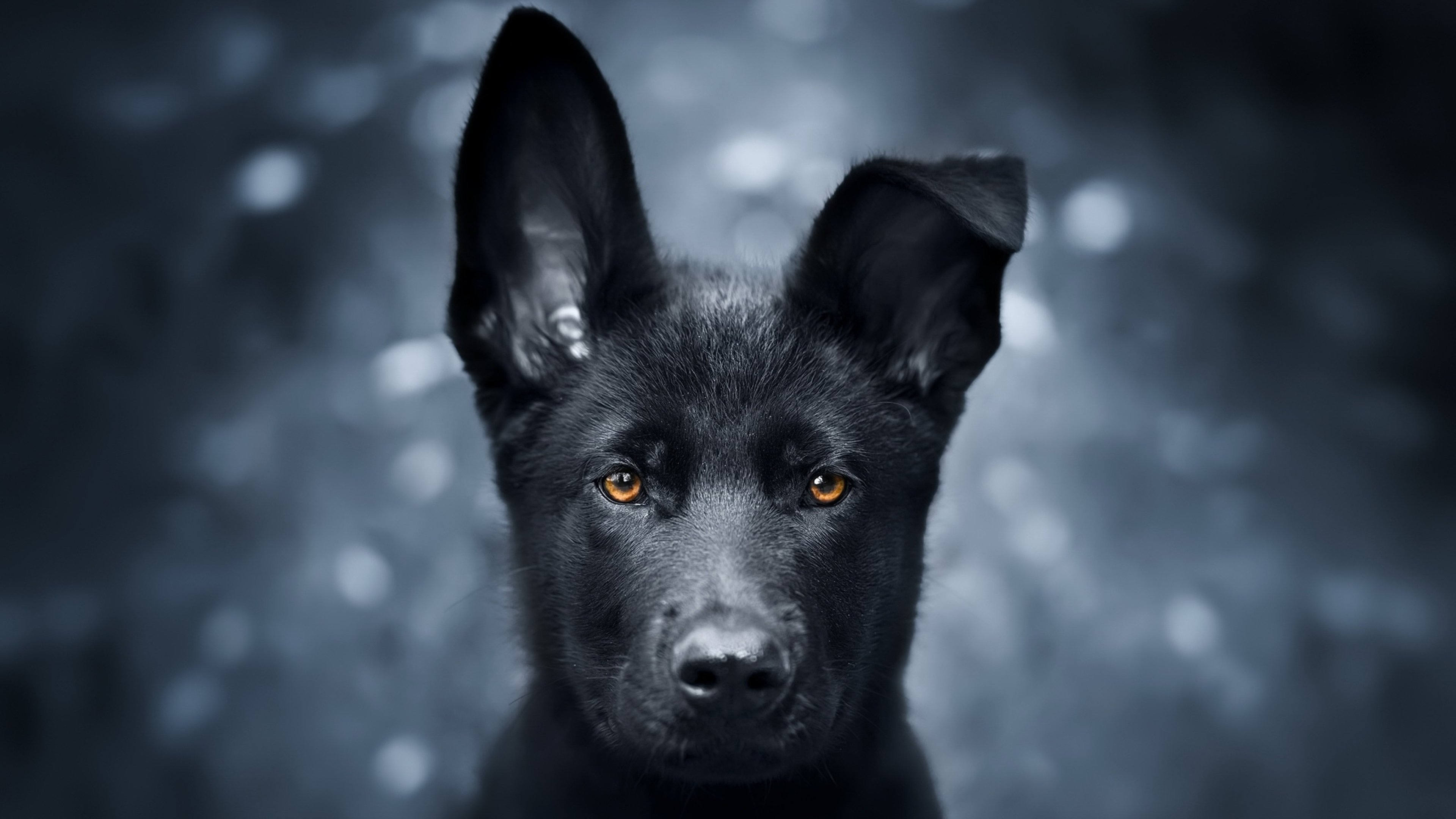 Чёрная немецкая овчарка с голубыми глазами
