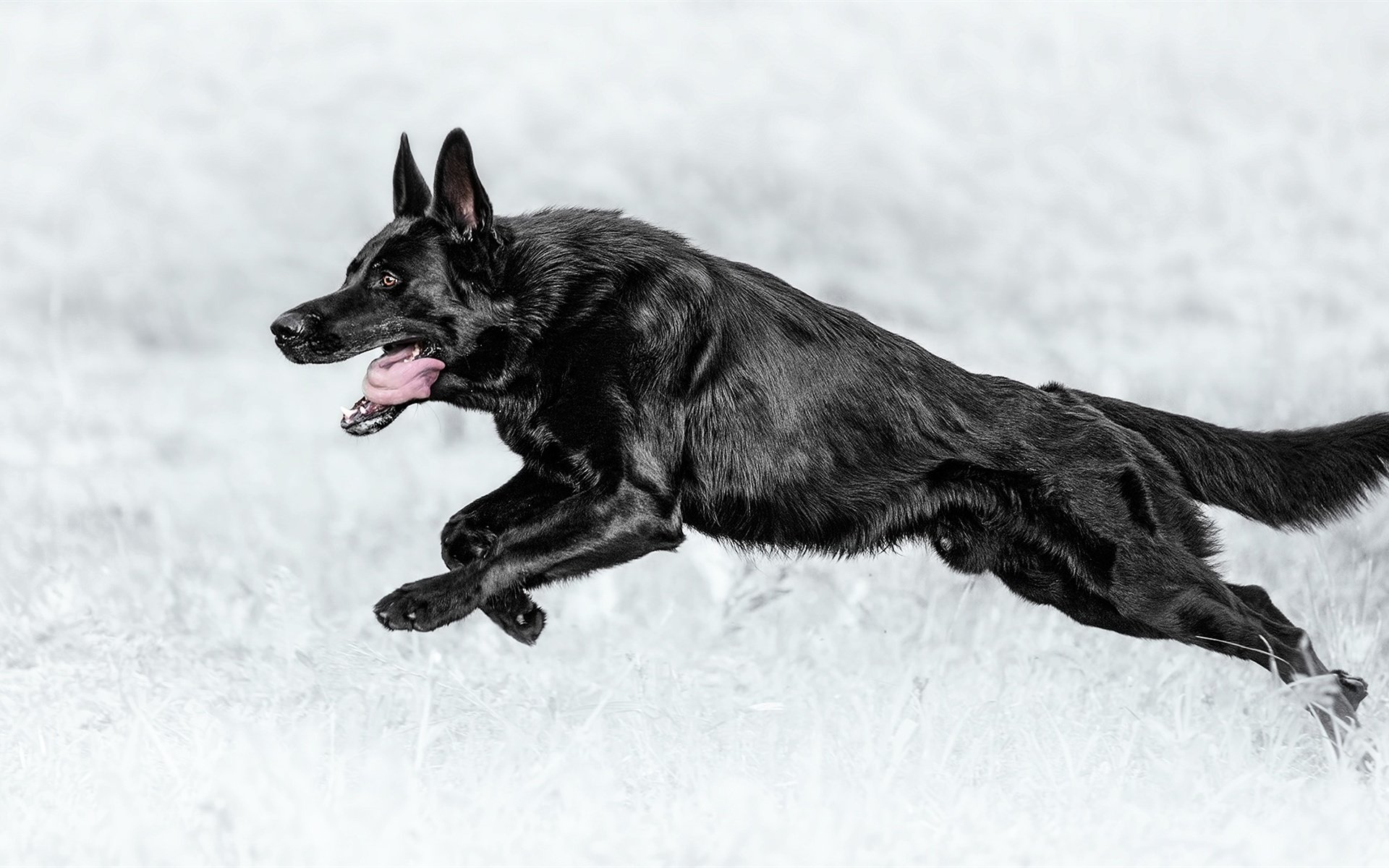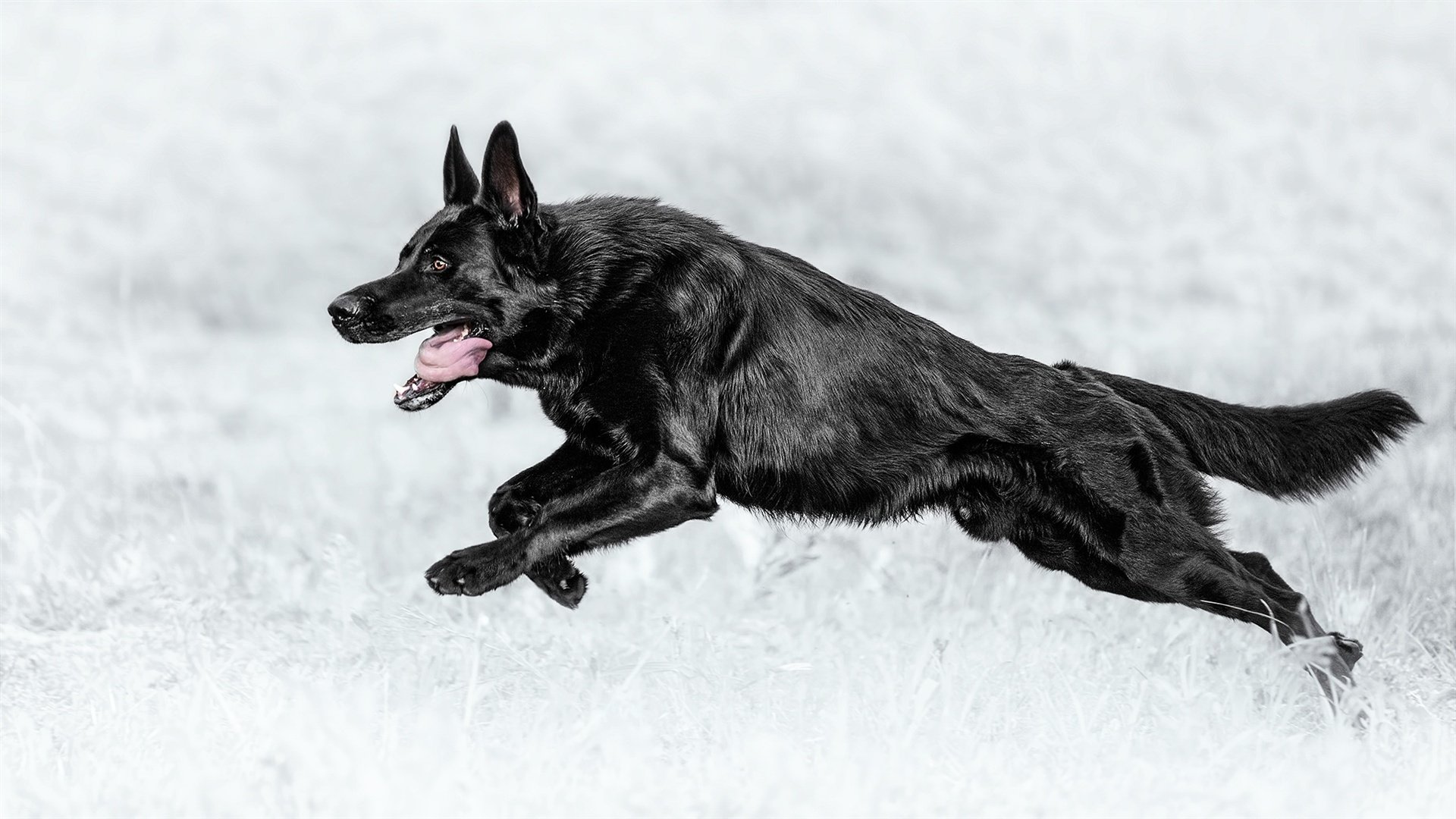 Черная овчарка немецкая бегает