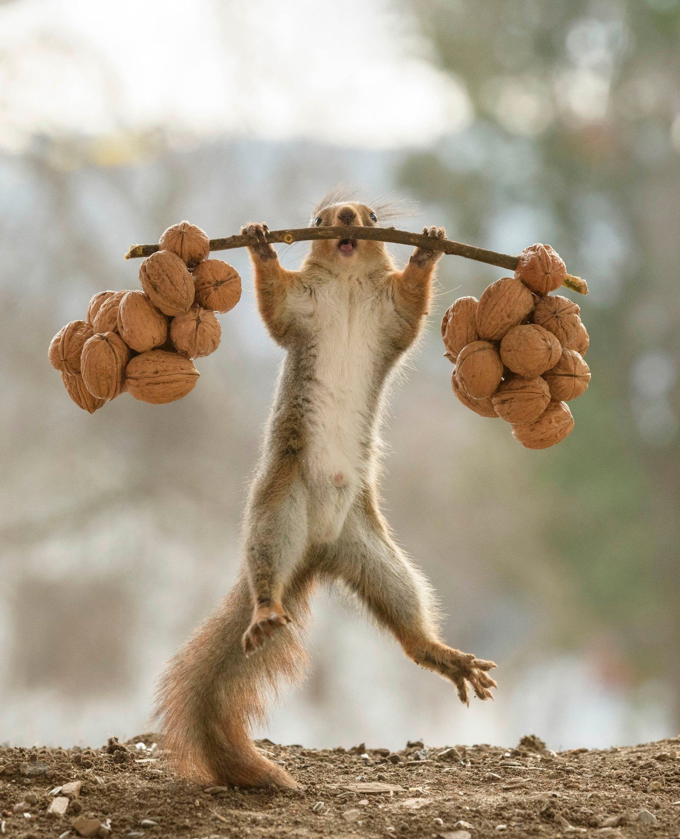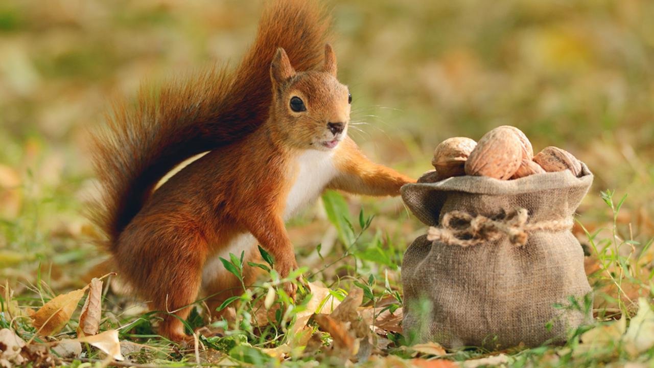 Белка с мешком орехов