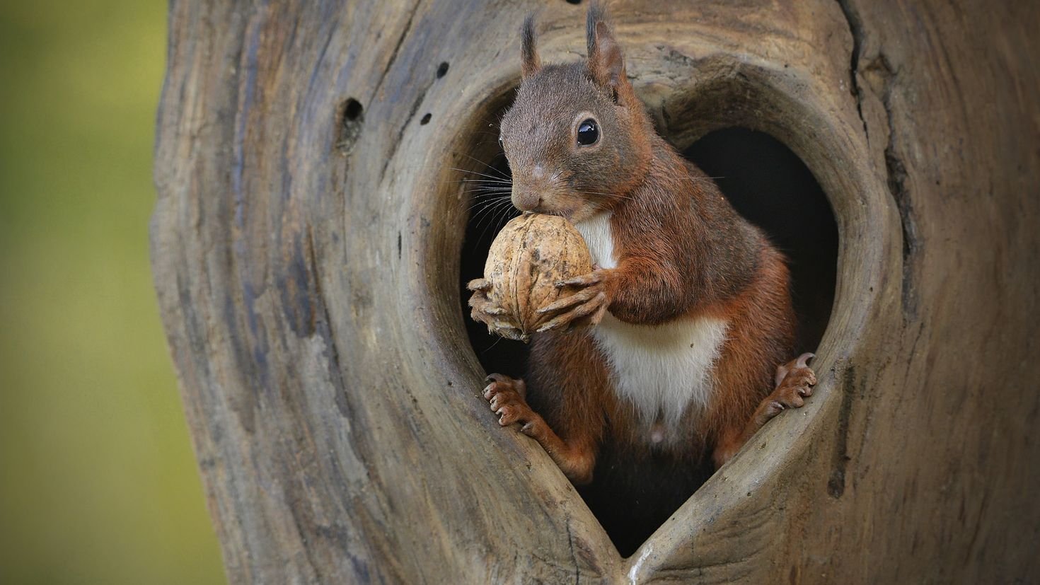 Белка держит орех