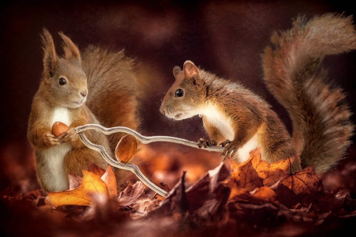 Белка запасает орешки