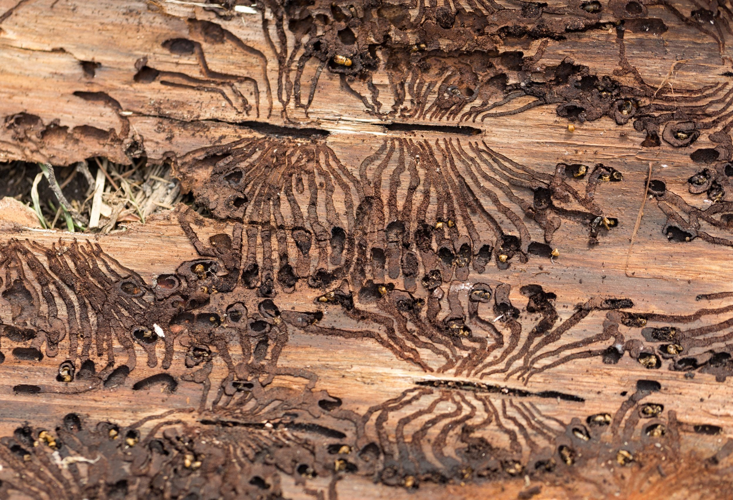 Личинки в древесине дерева