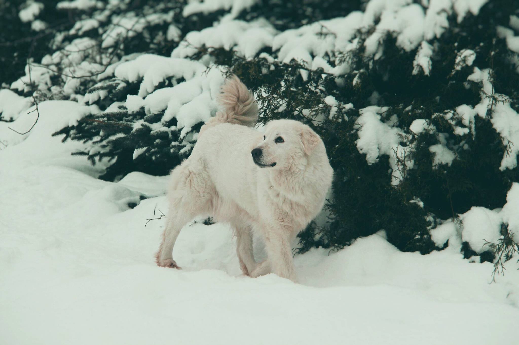 Маремма-абруццкая овчарка в снегу
