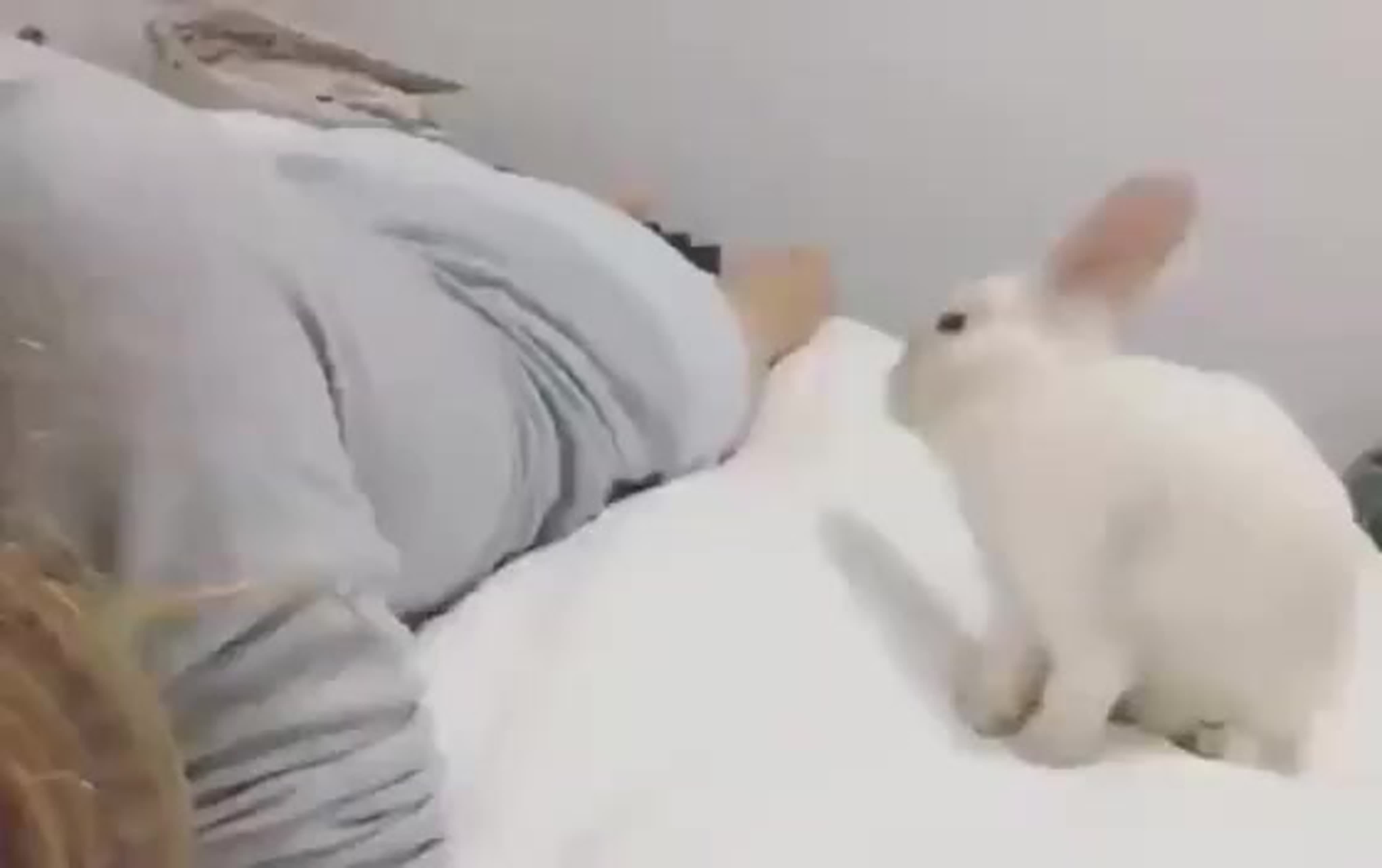 Кролик на кровати