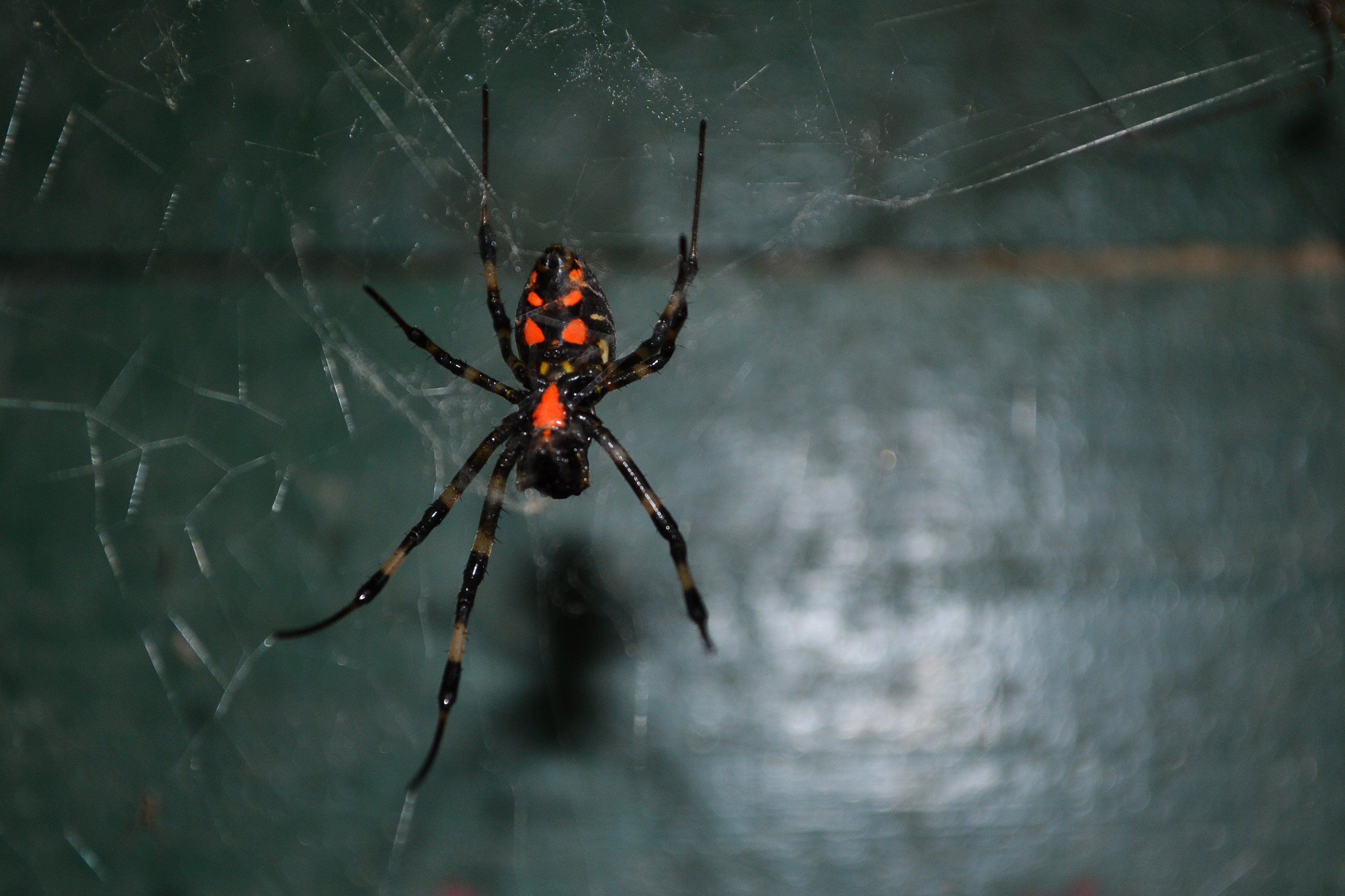 Страшный паук на паутине