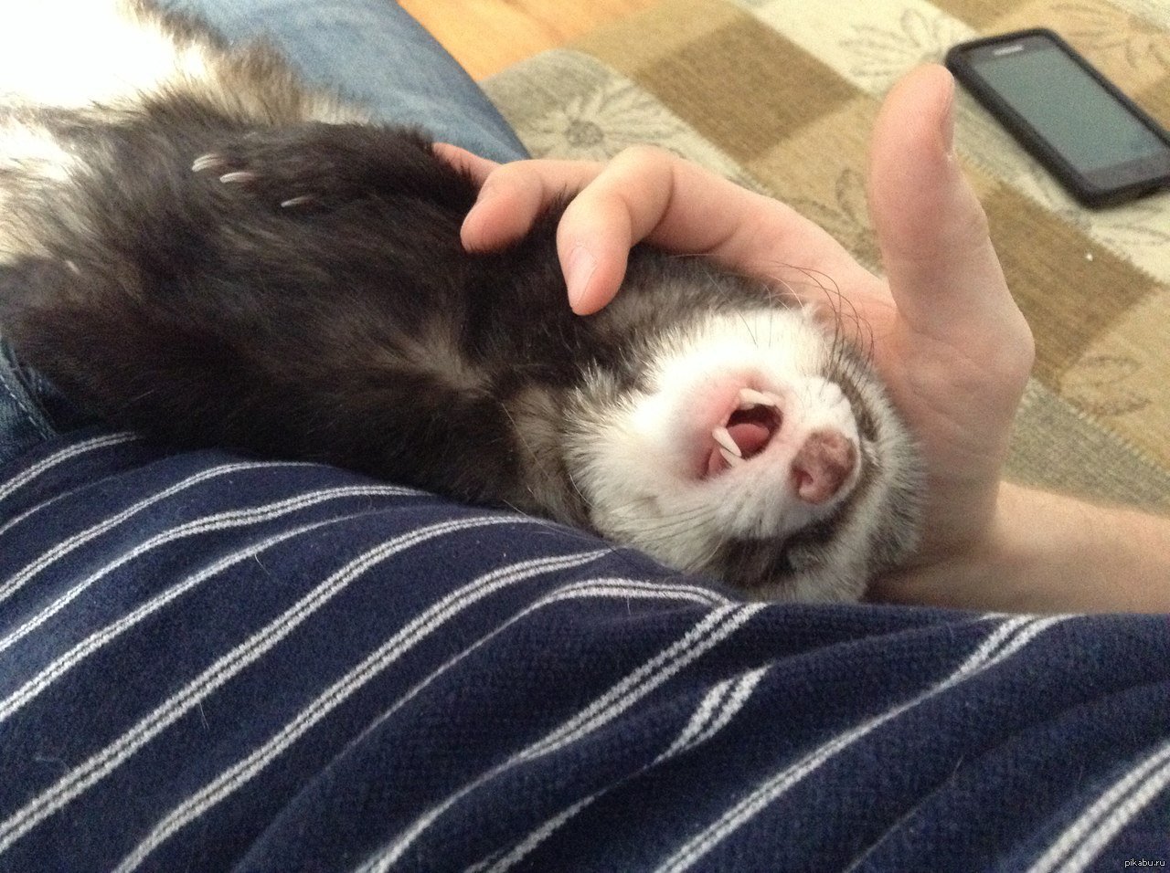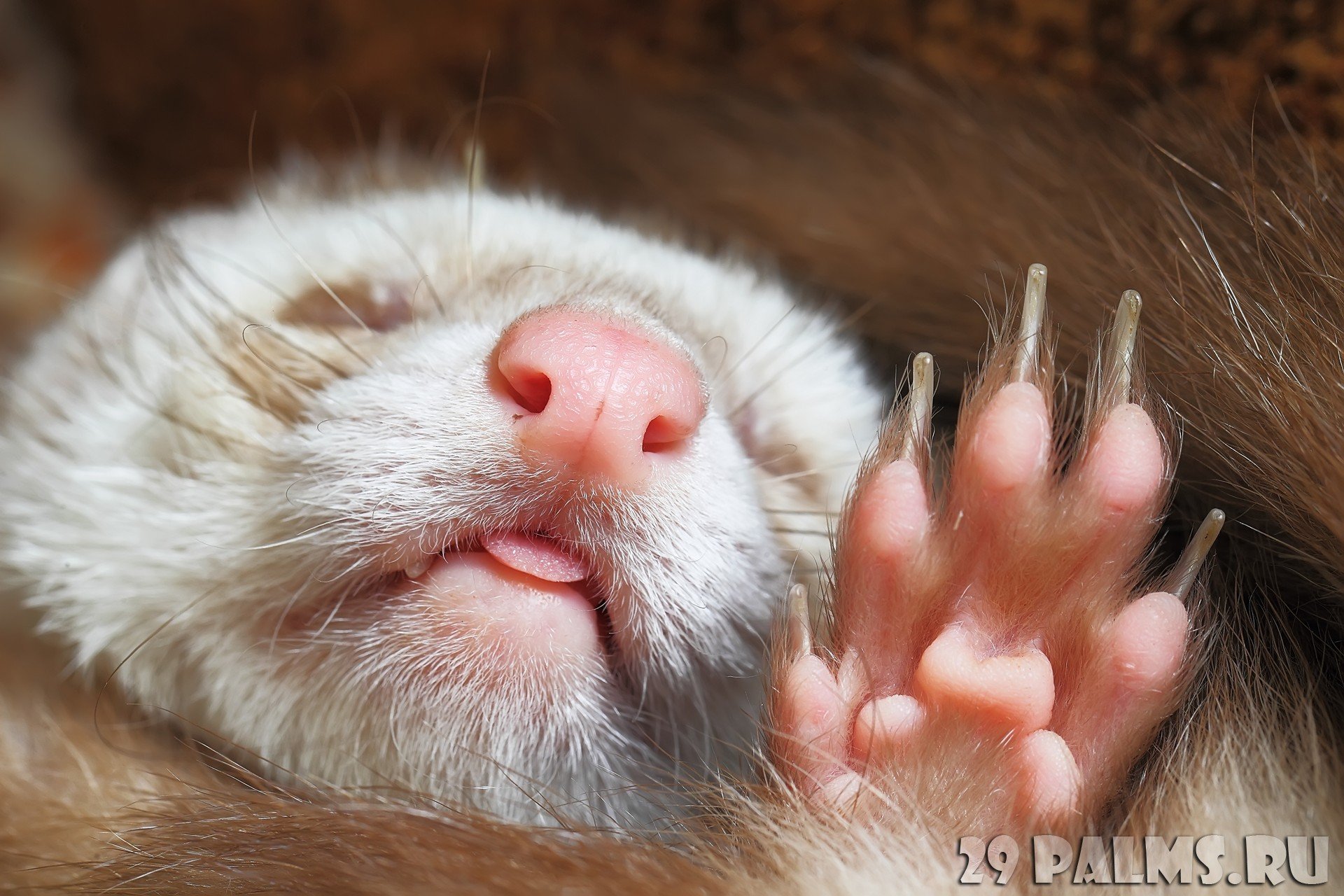 Хорек дрыхнет с высунутым языком