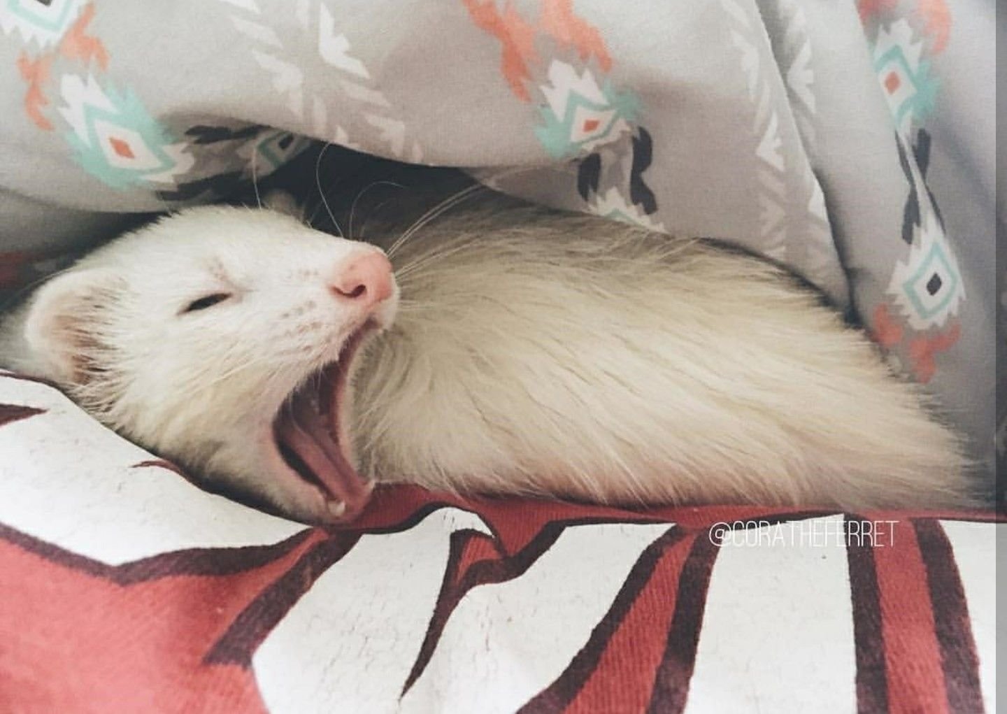 Хорёк на постели белый