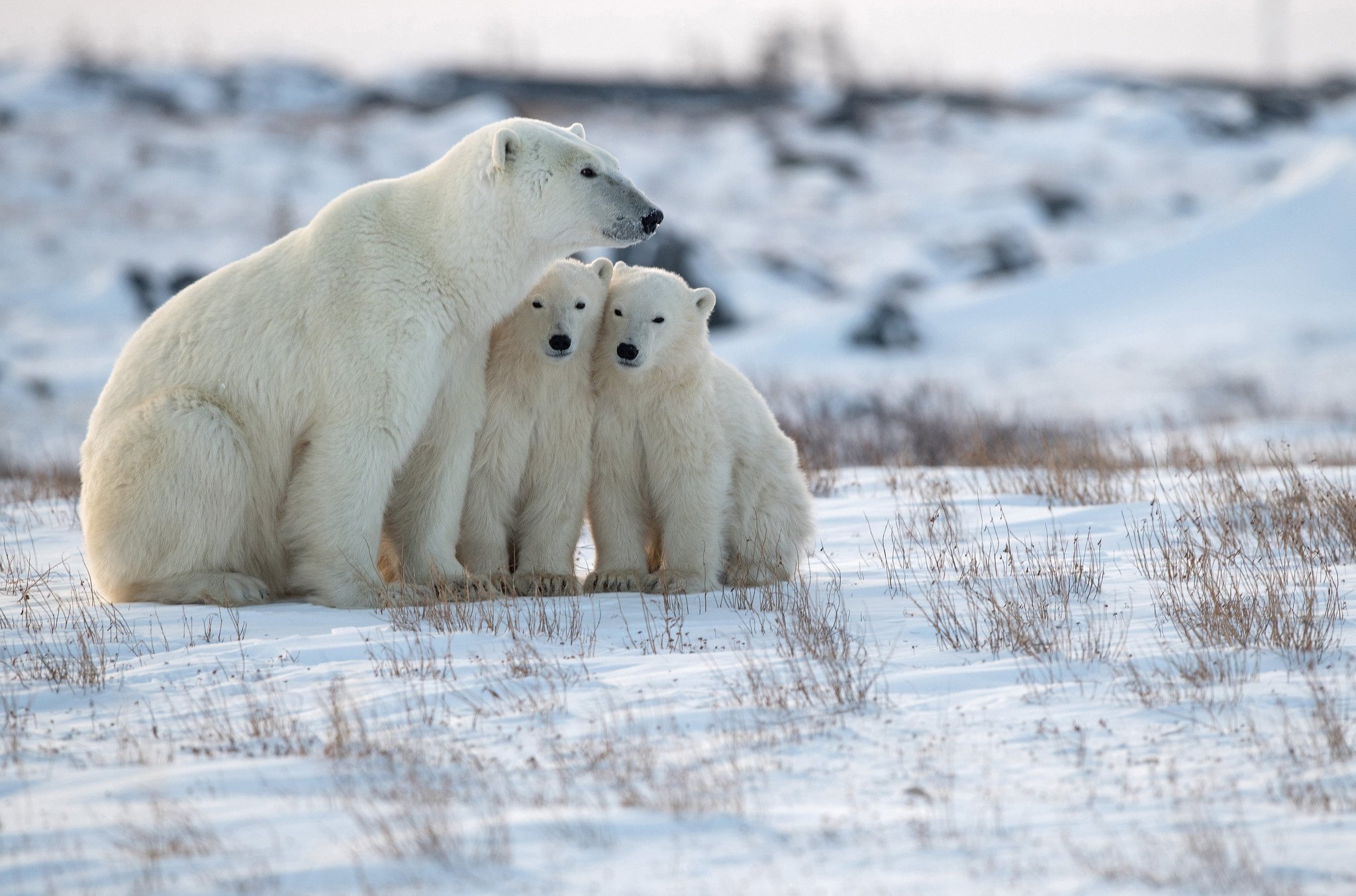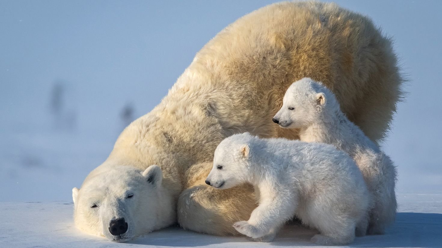 Белый медведь с медвежатами