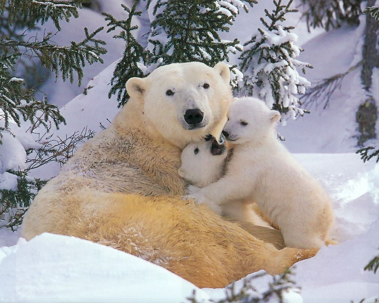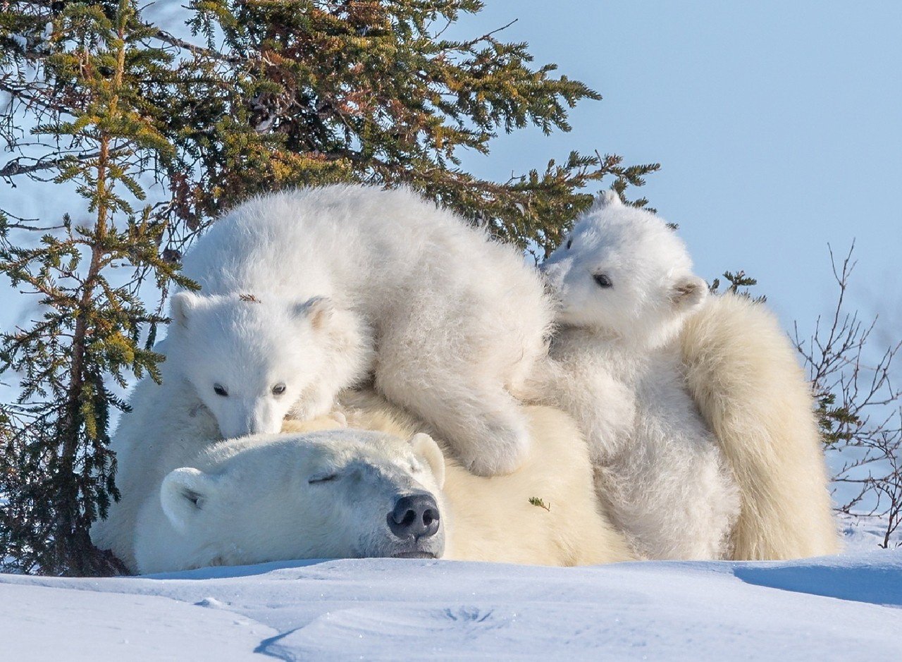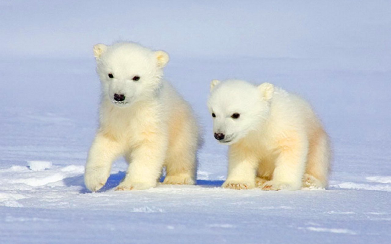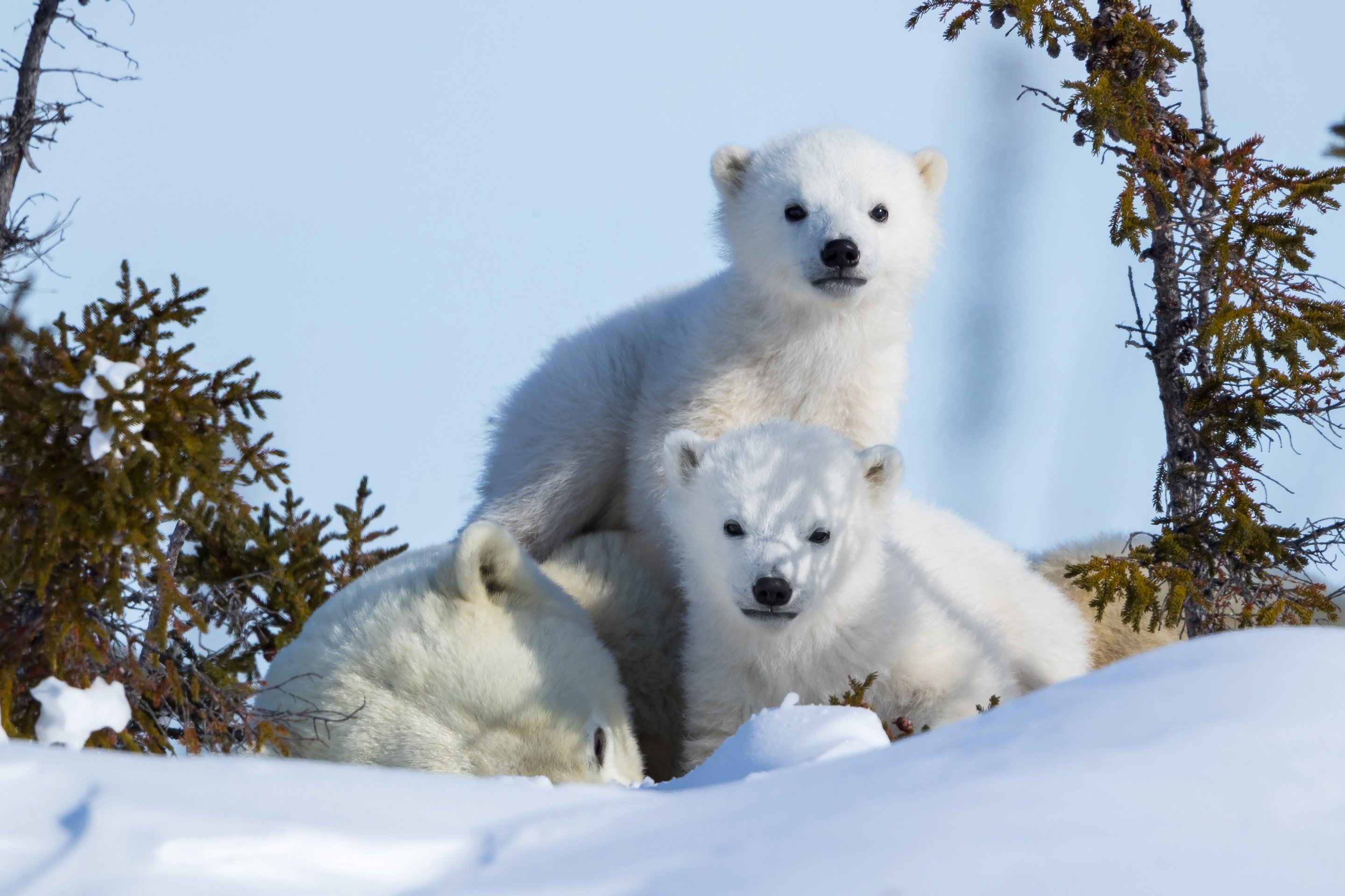 Белые медвежата зимой
