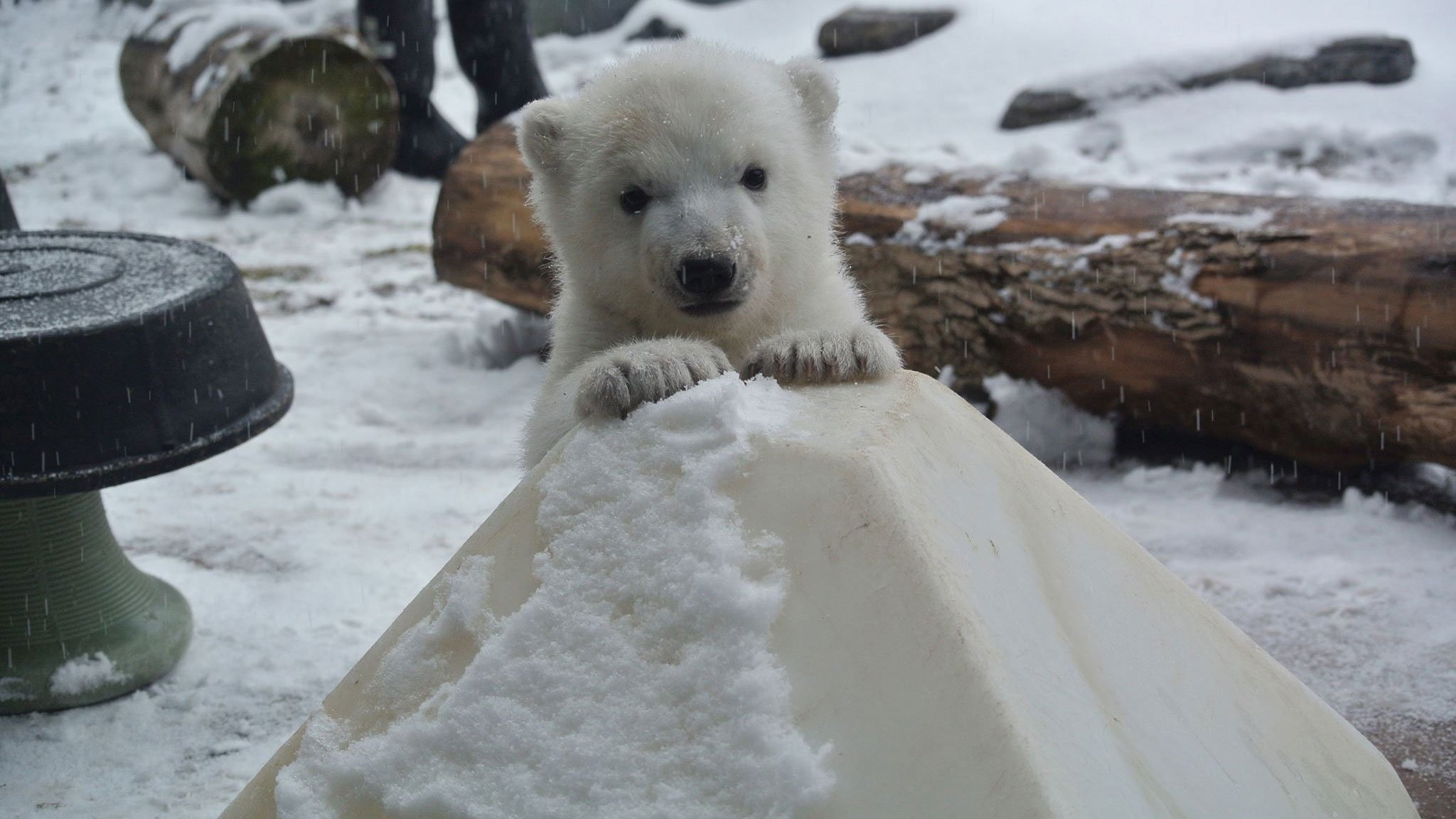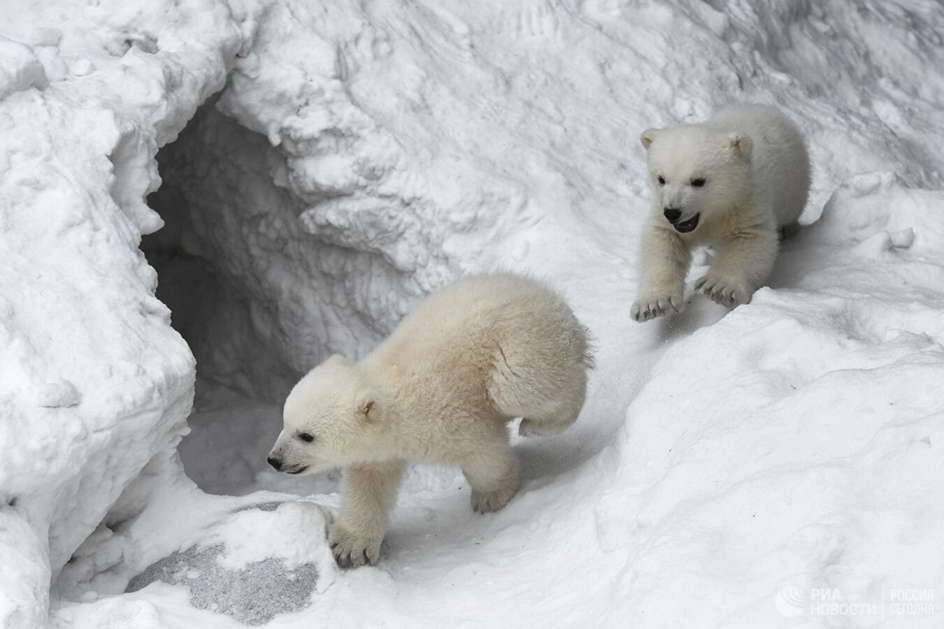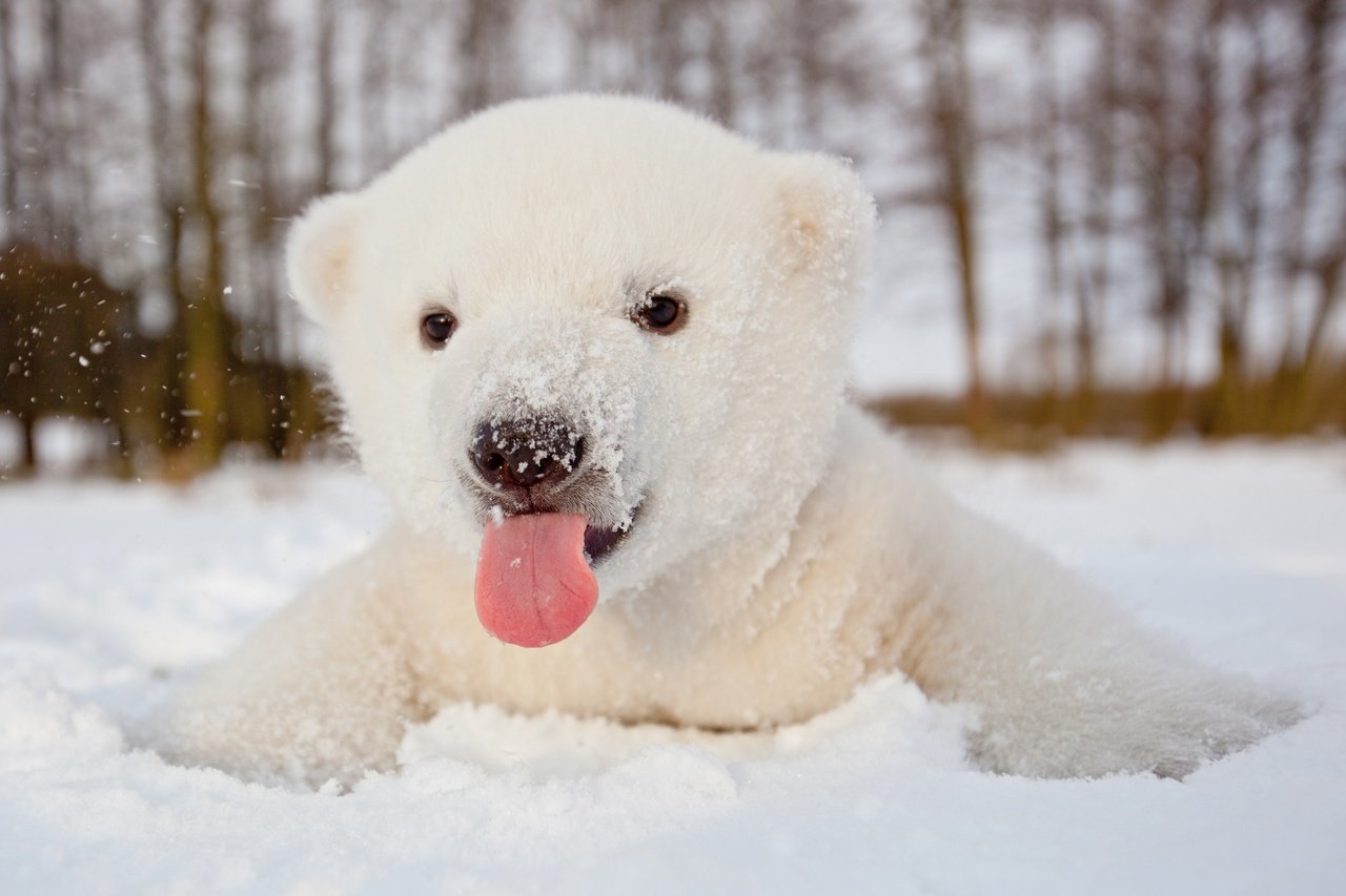 Белые медвежата зимой