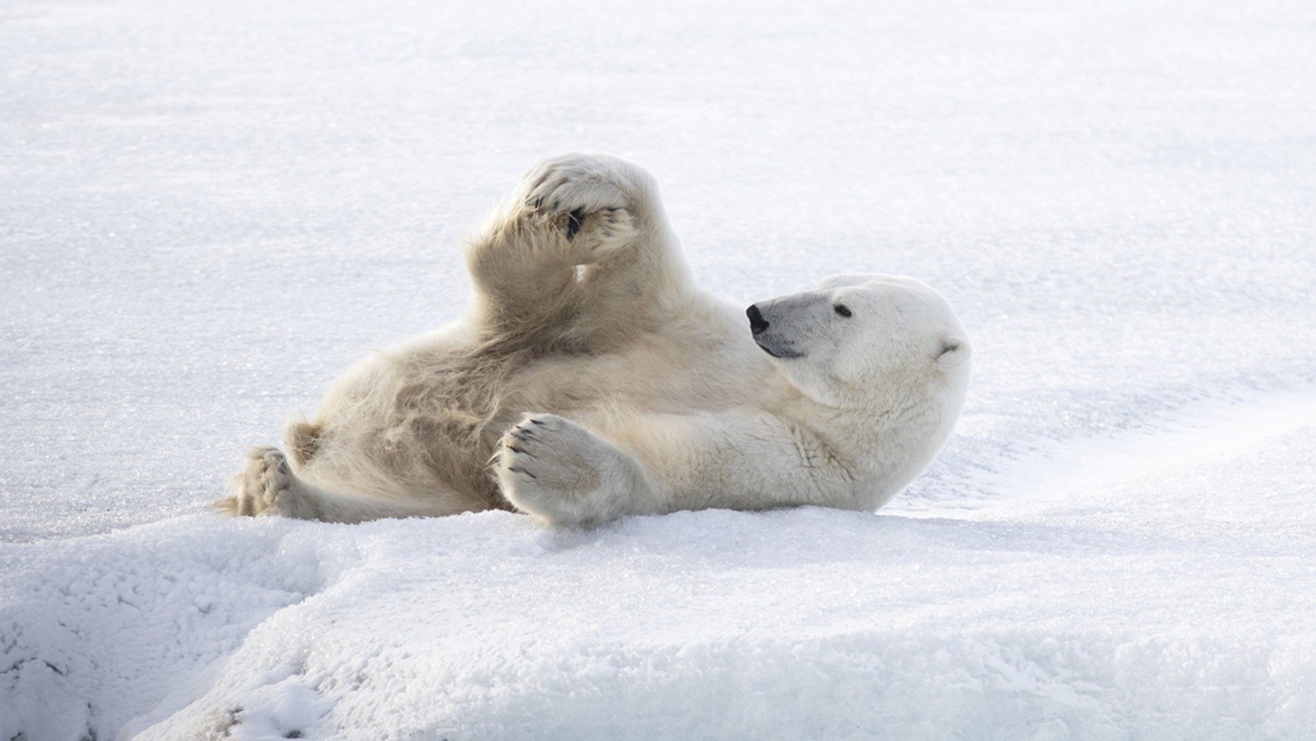 Белый медведь играется