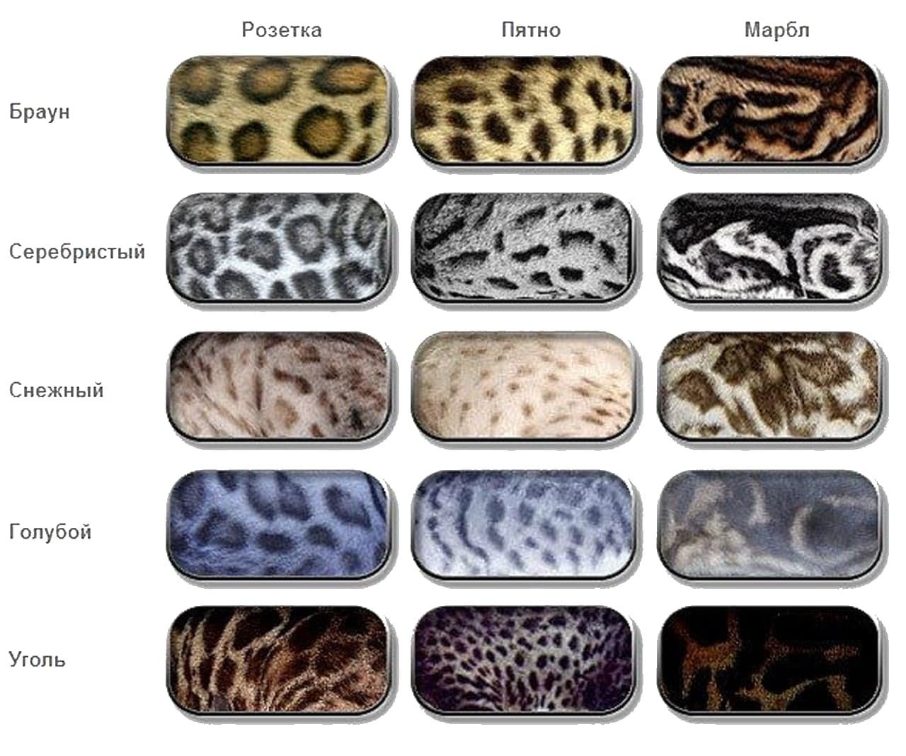 Окрасы бенгалов таблица