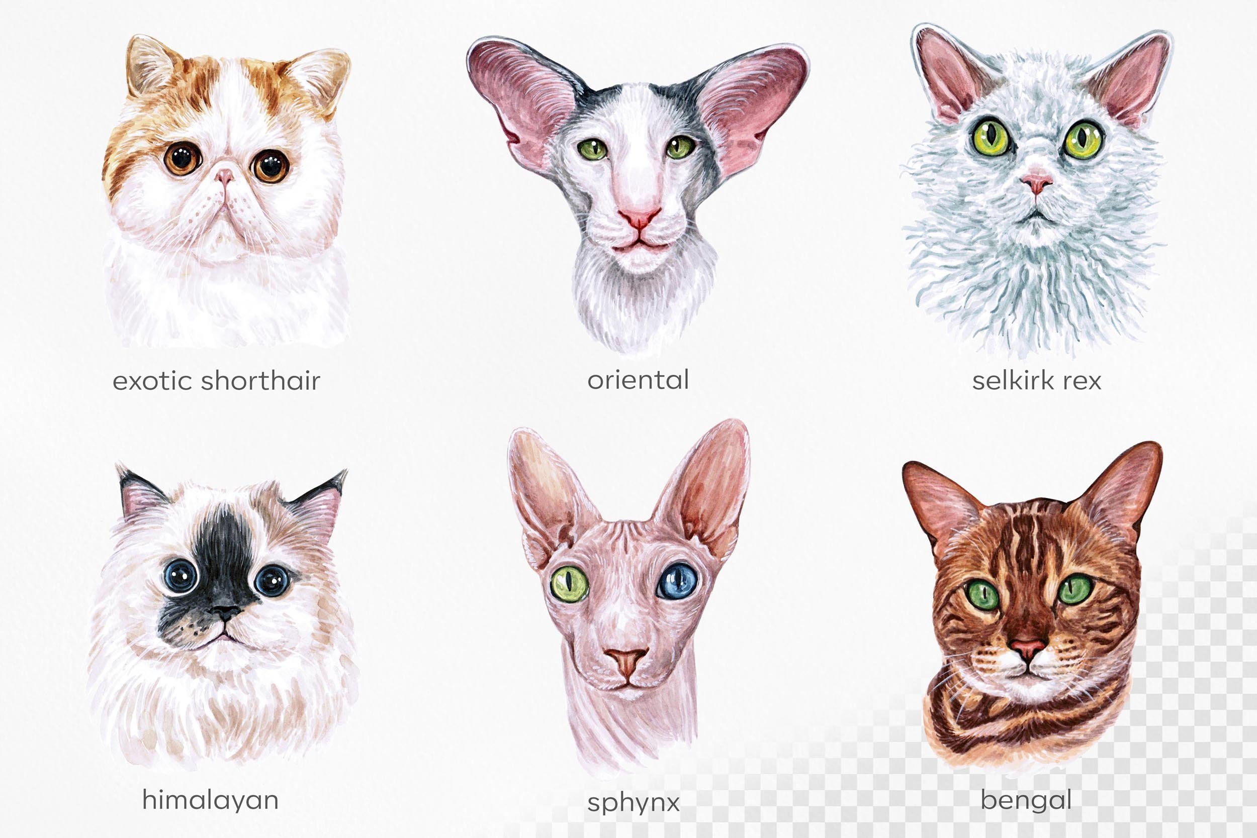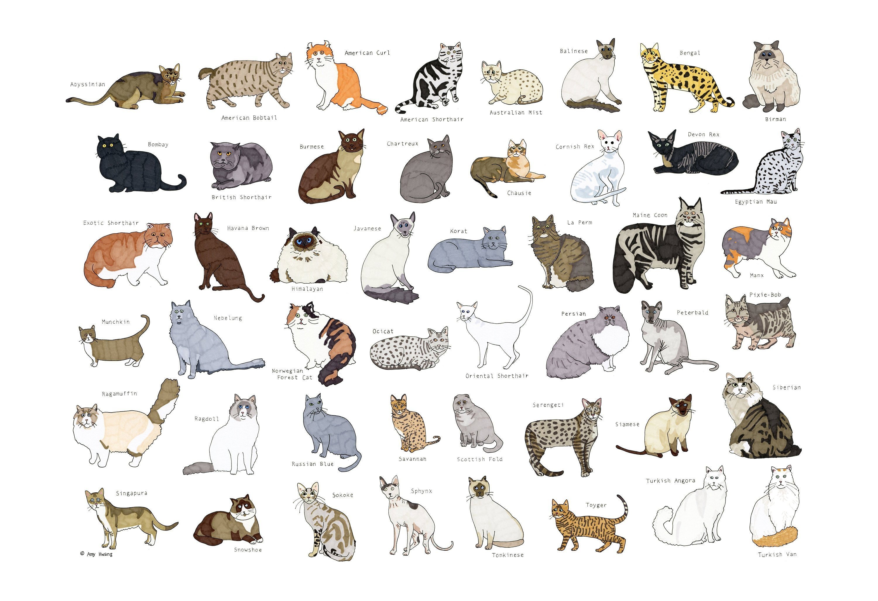 Кошки разные породы иллюстрации