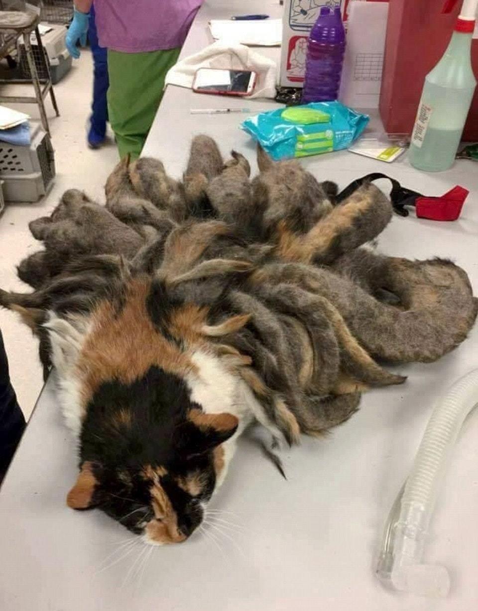 Скаталась шерсть у кошки
