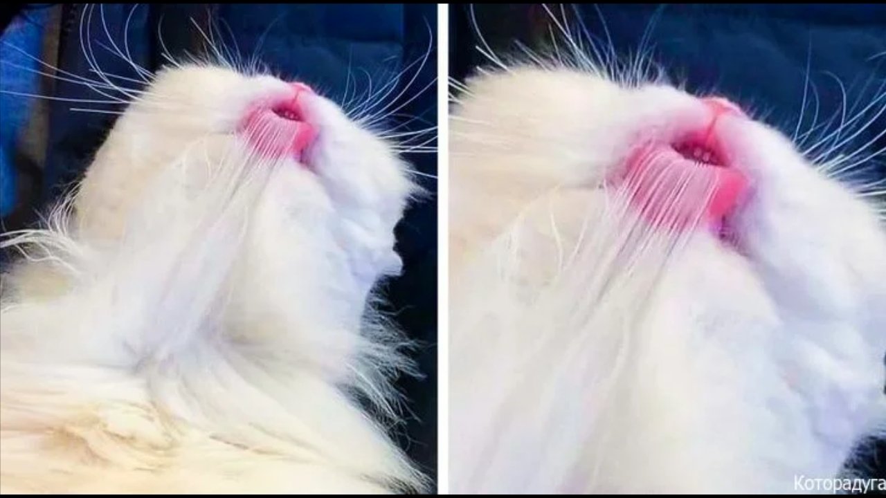 Кот зацепился языком за шерсть