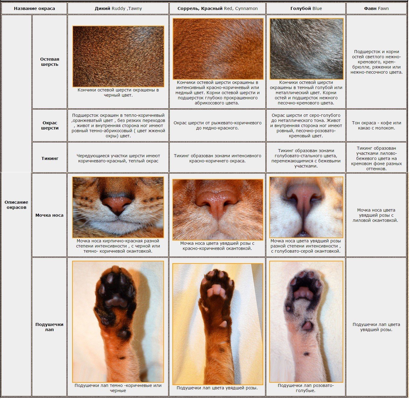 Генетическая таблица окраса абиссинских кошек