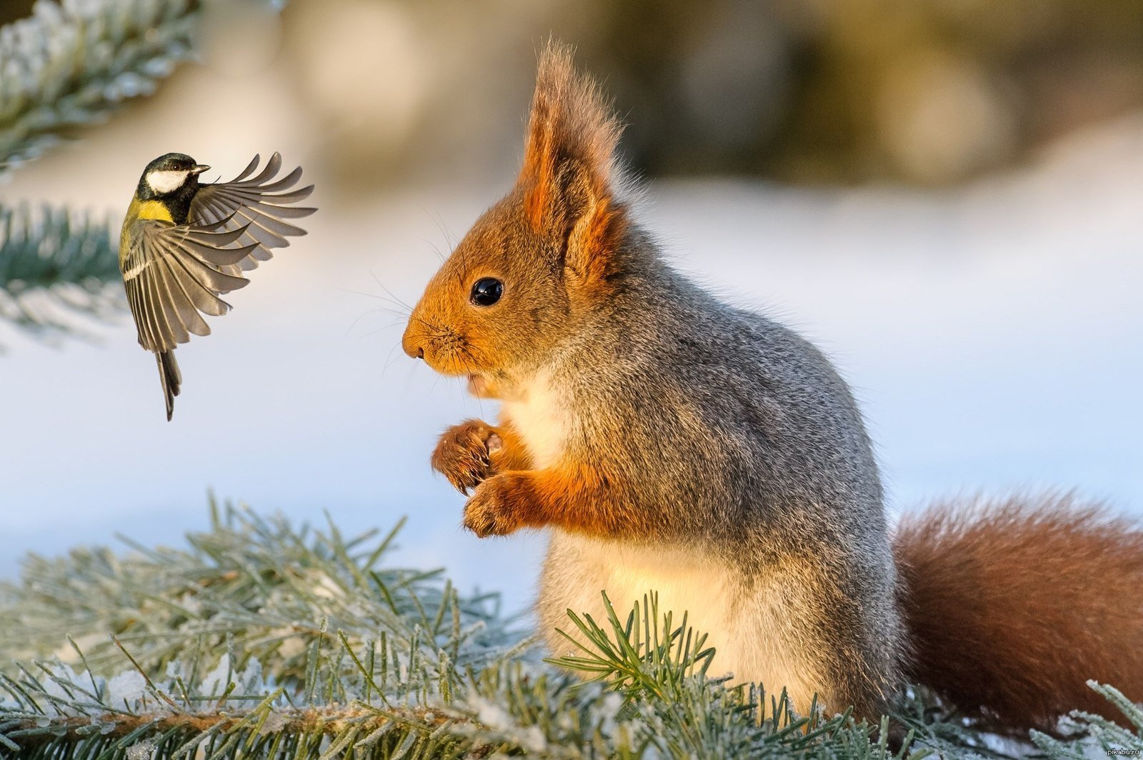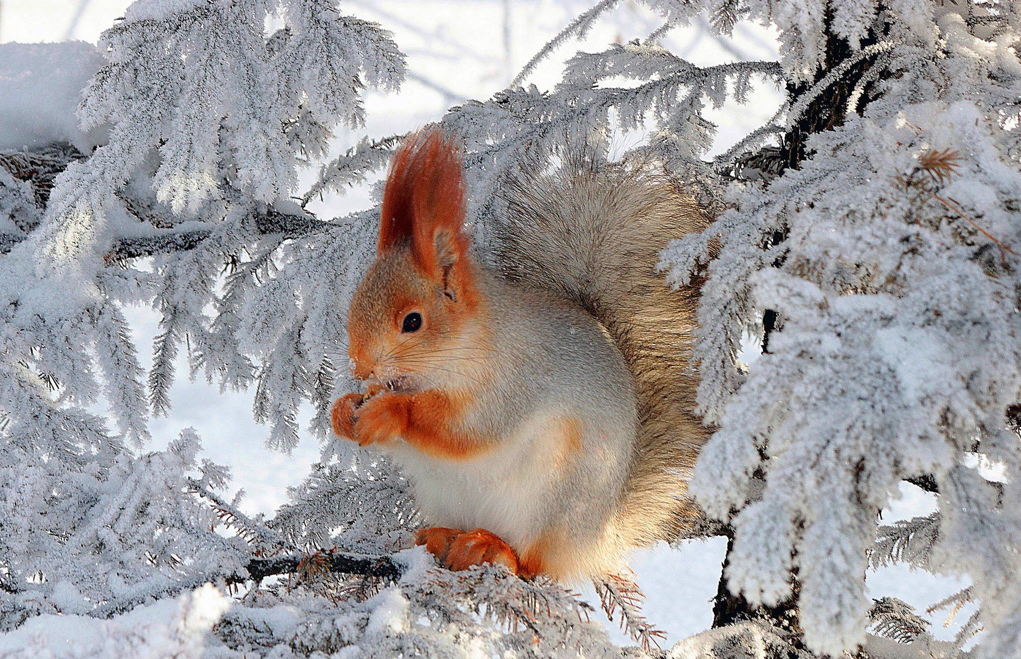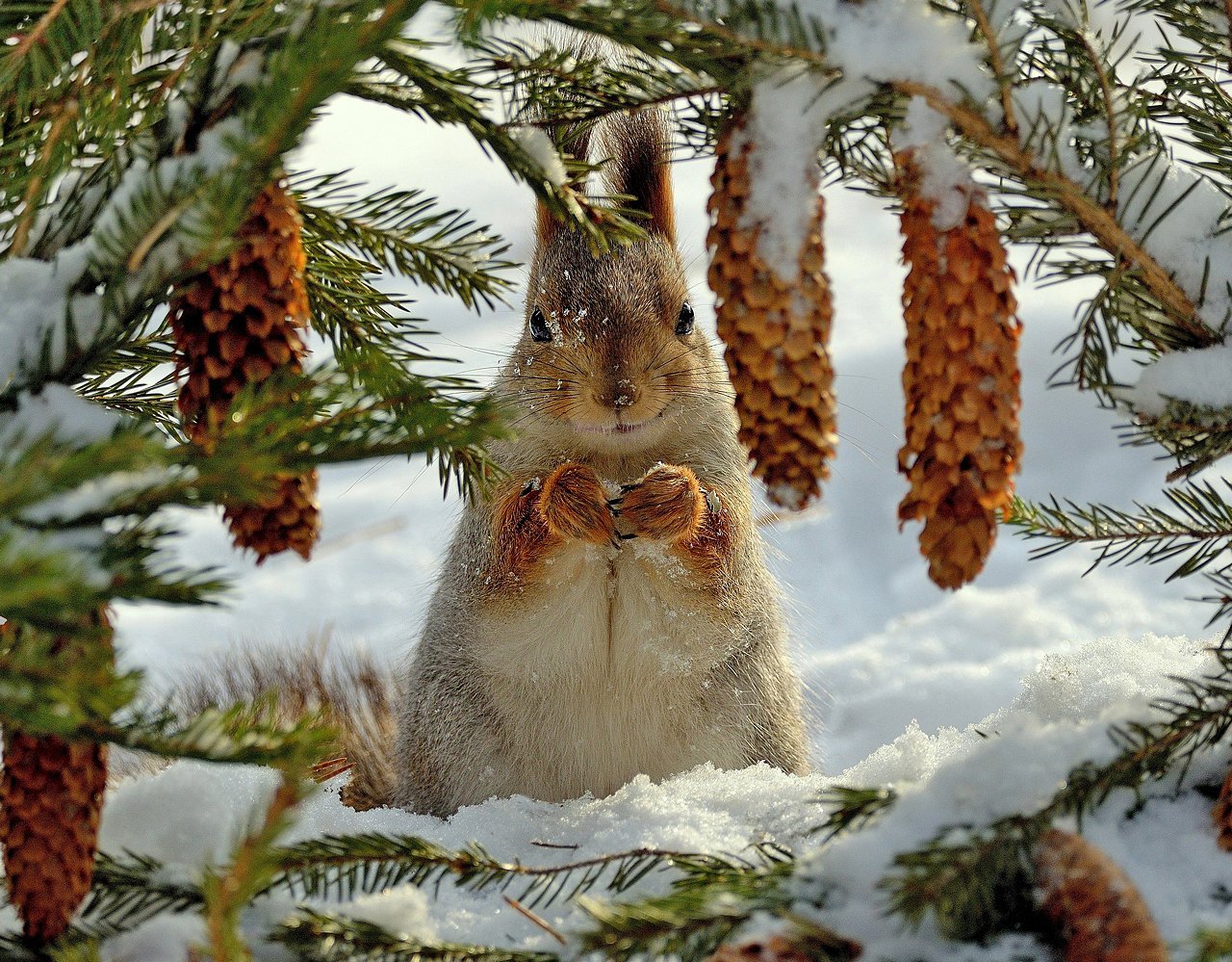 Красивые белки зимой