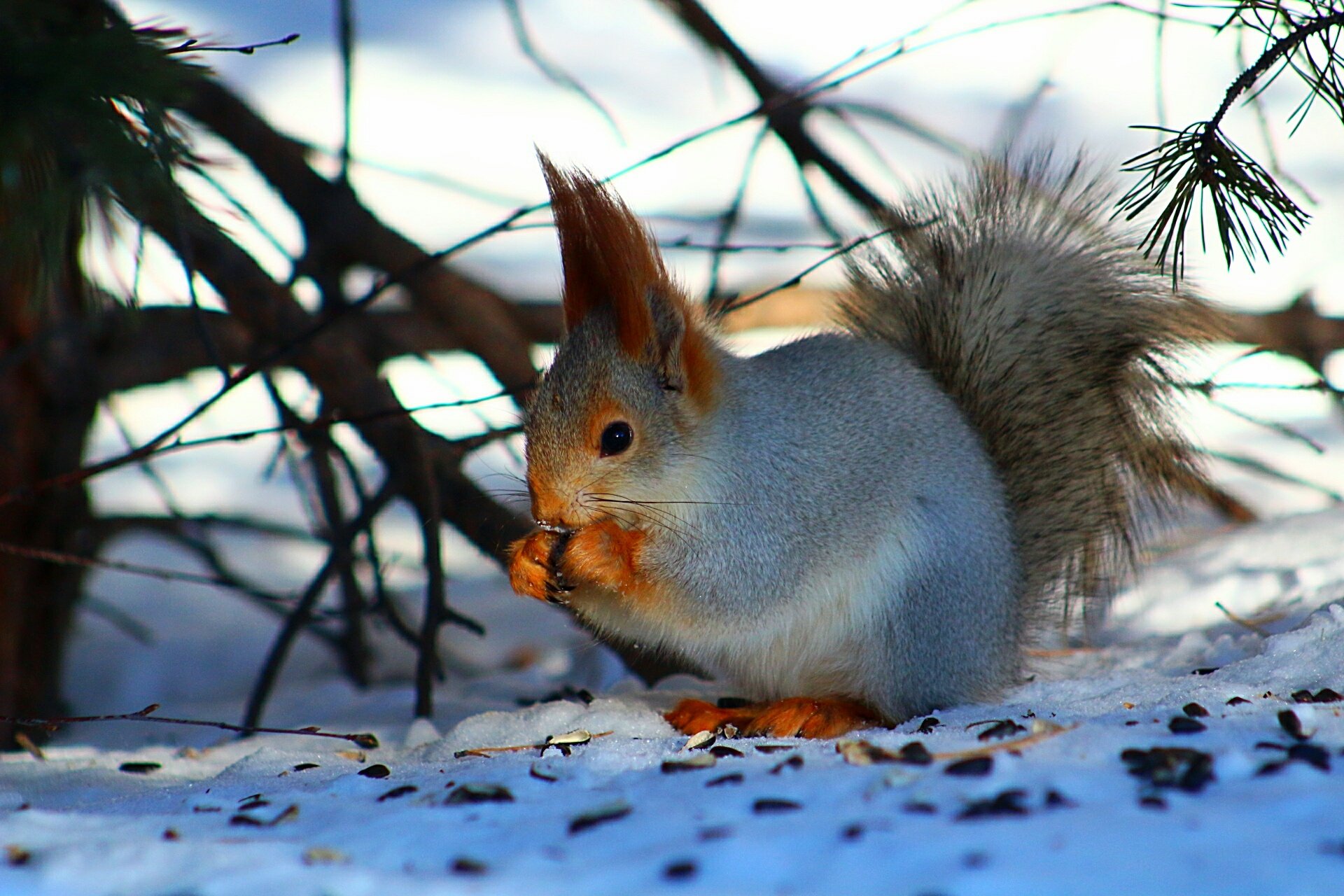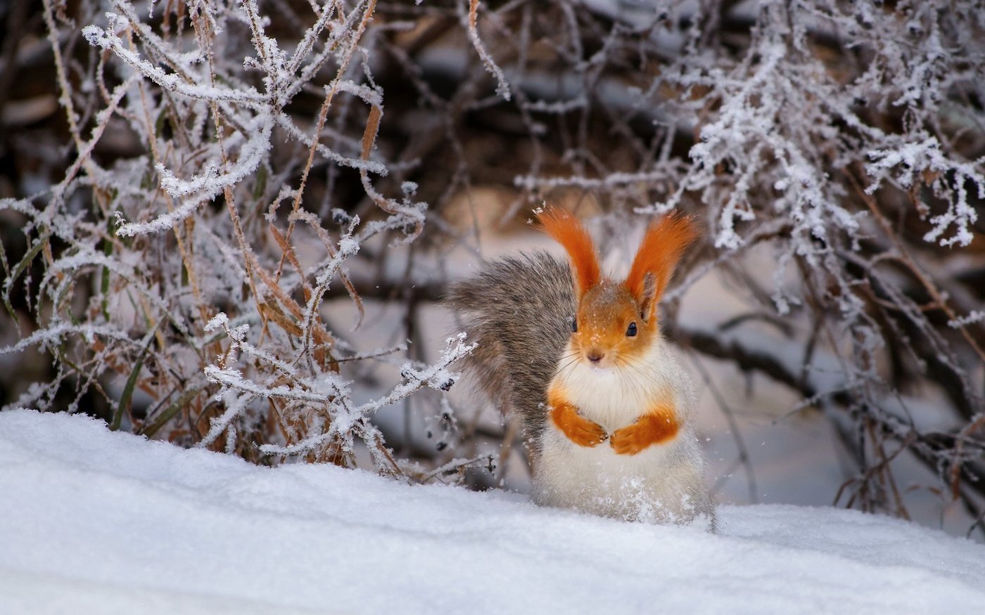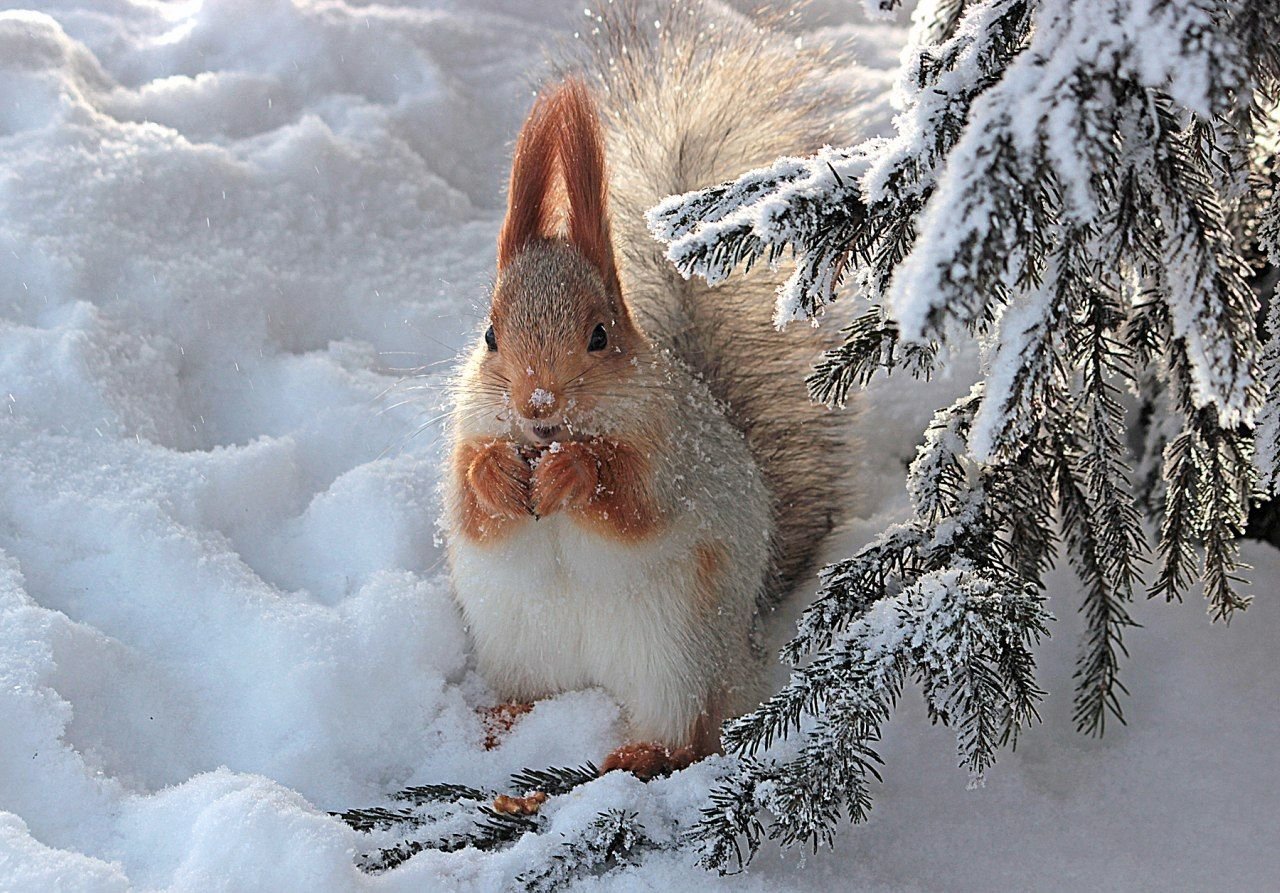 Белка в снегу