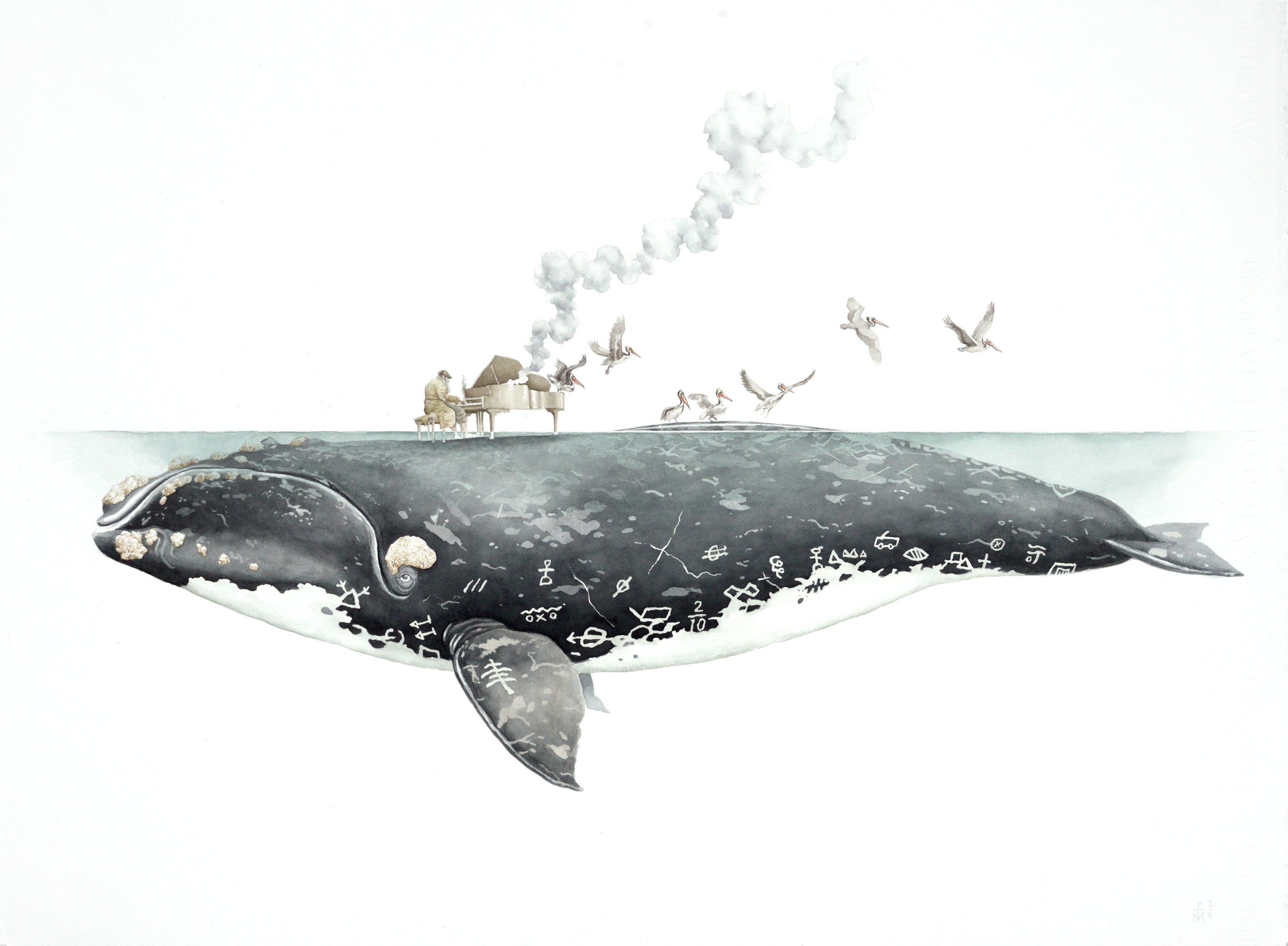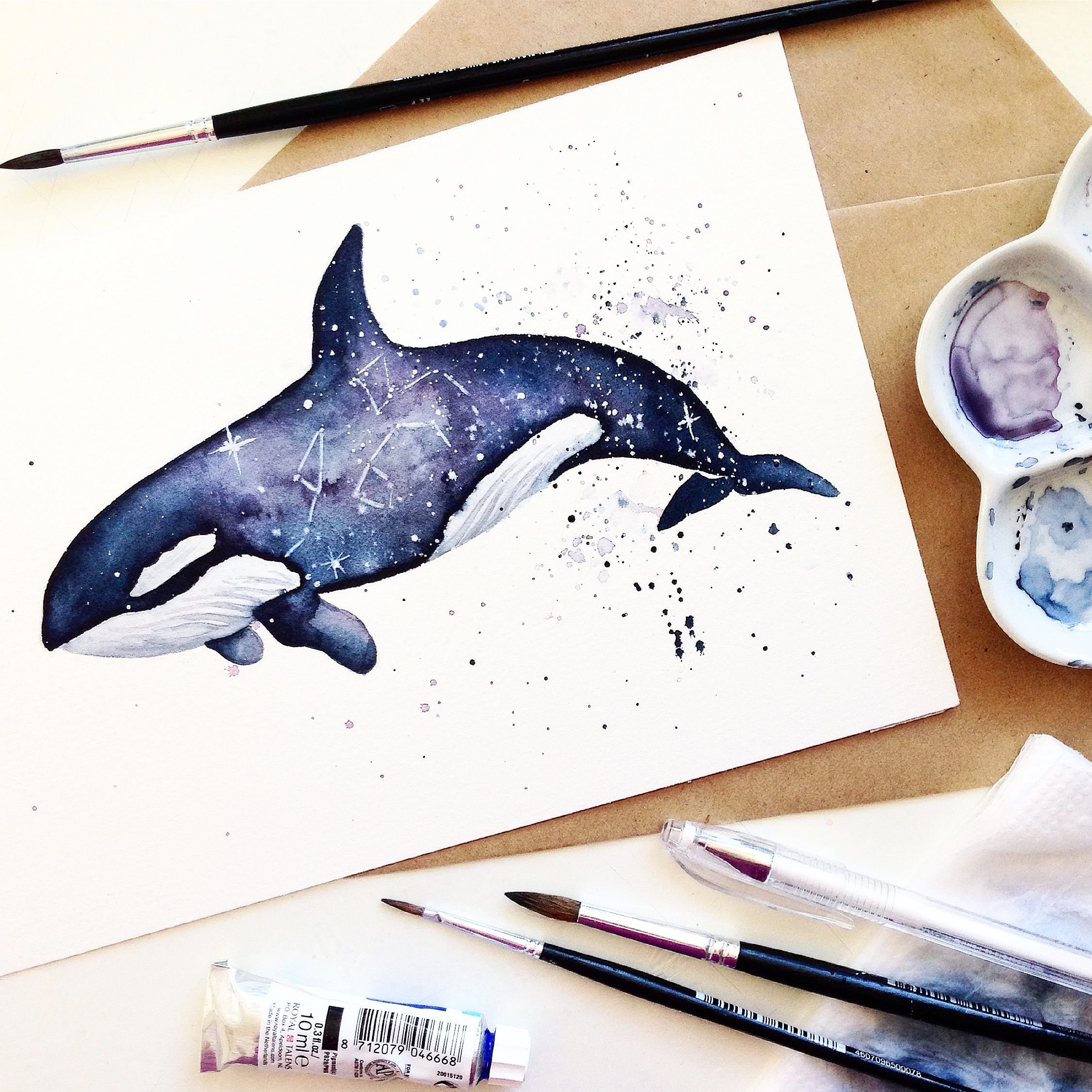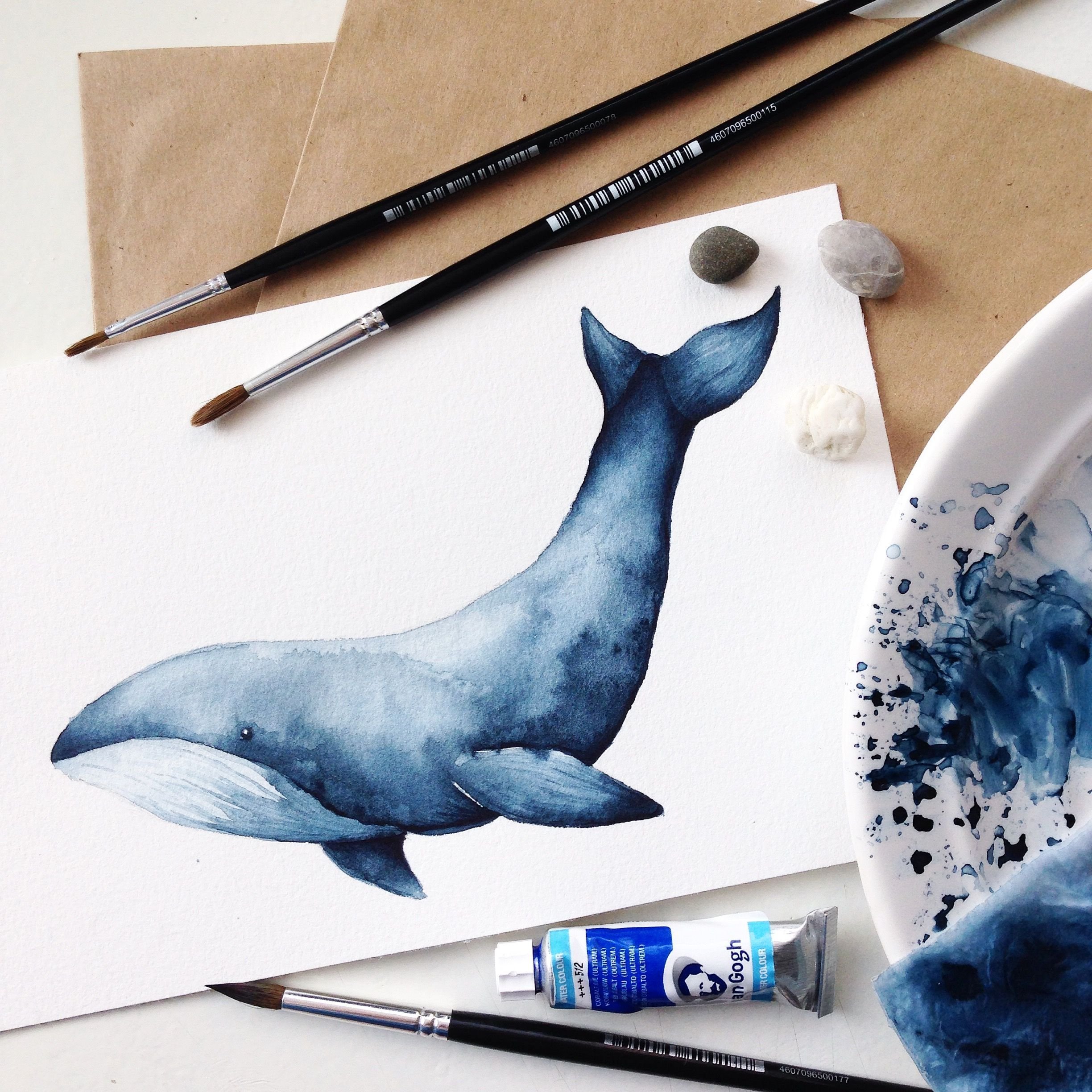 Кит нарисованный акварелью