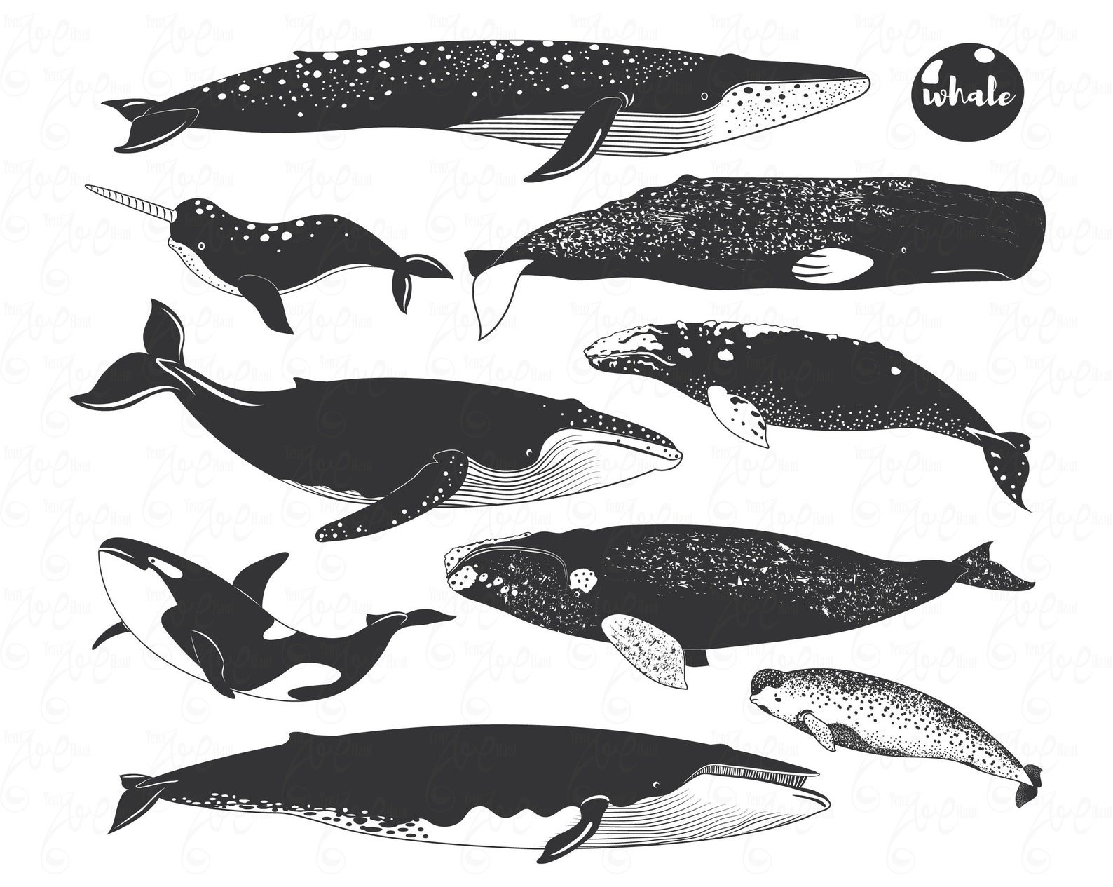 Кит в разных позах .