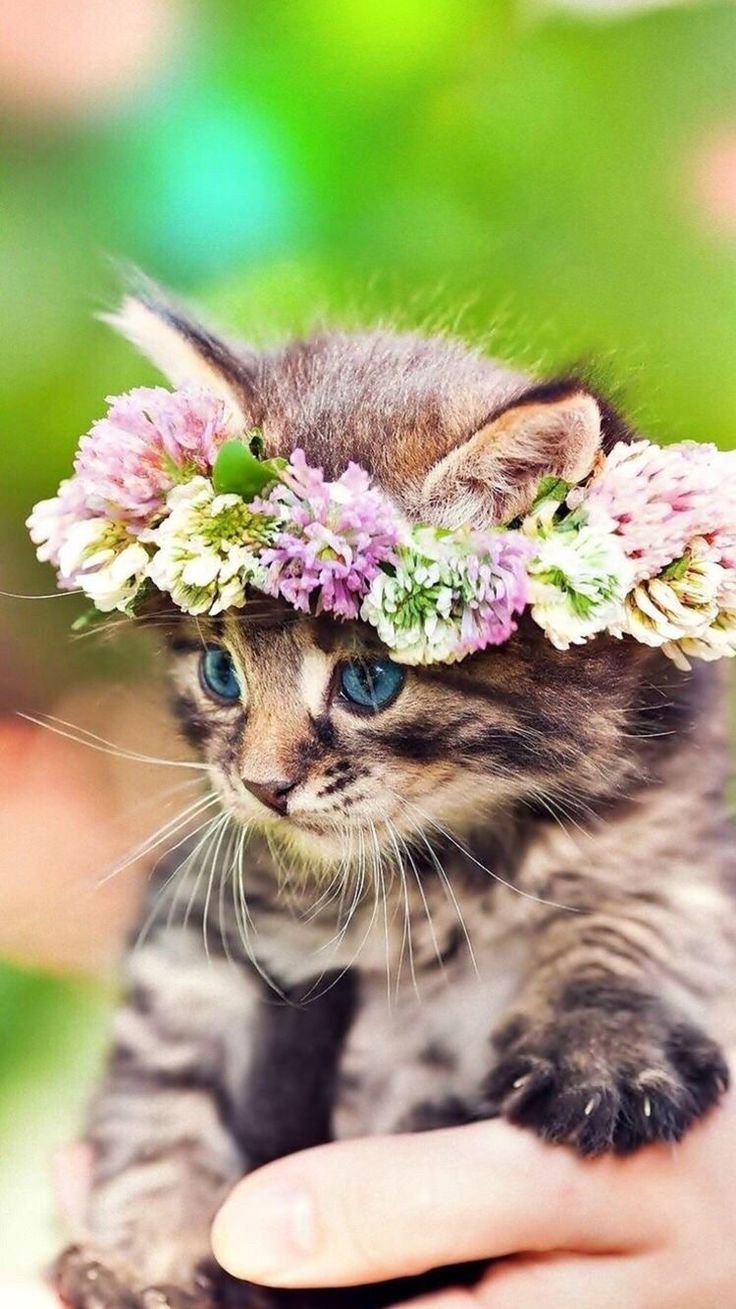Кошка с венком на голове