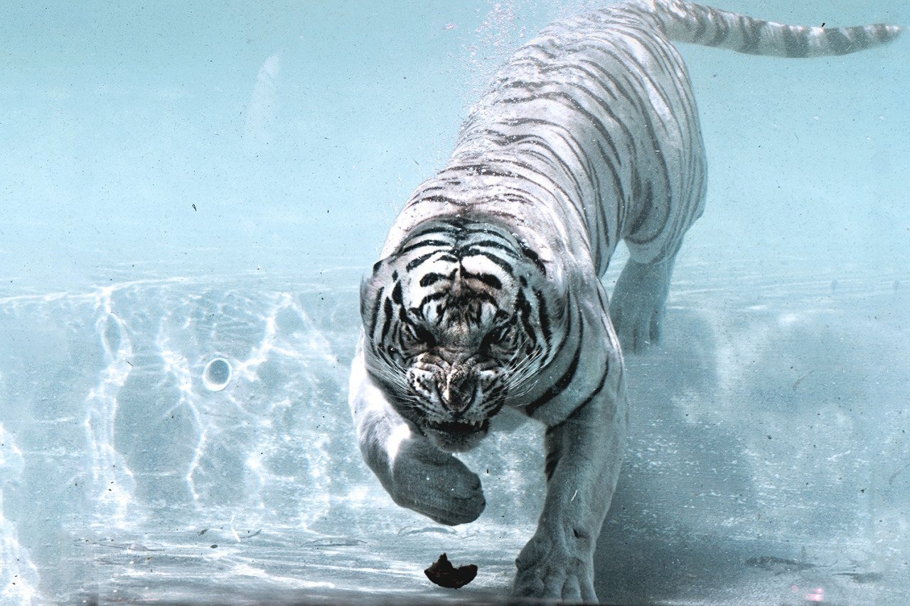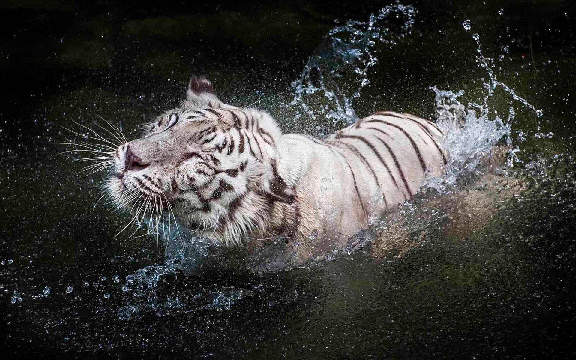 Белый тигр в воде