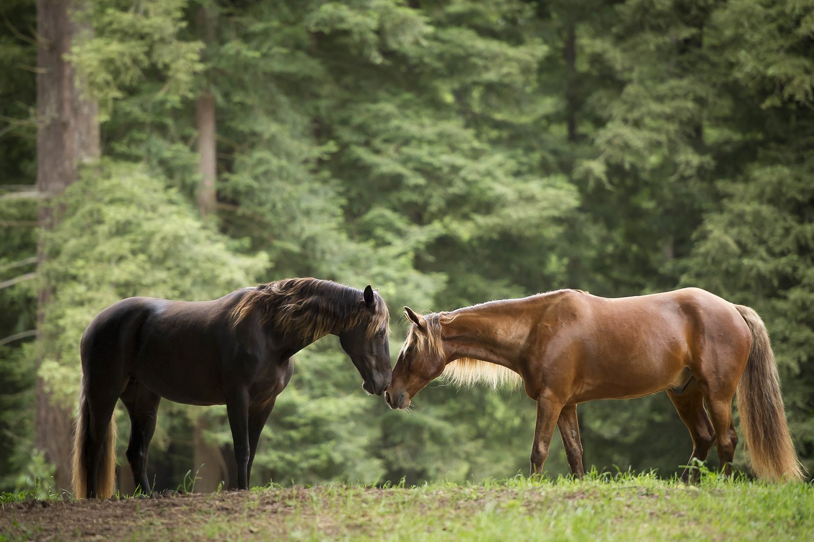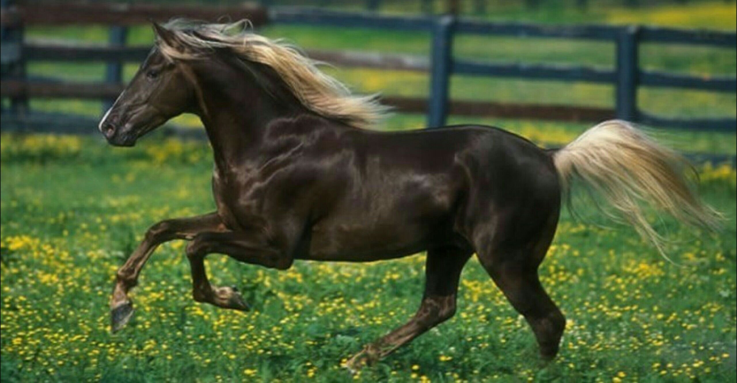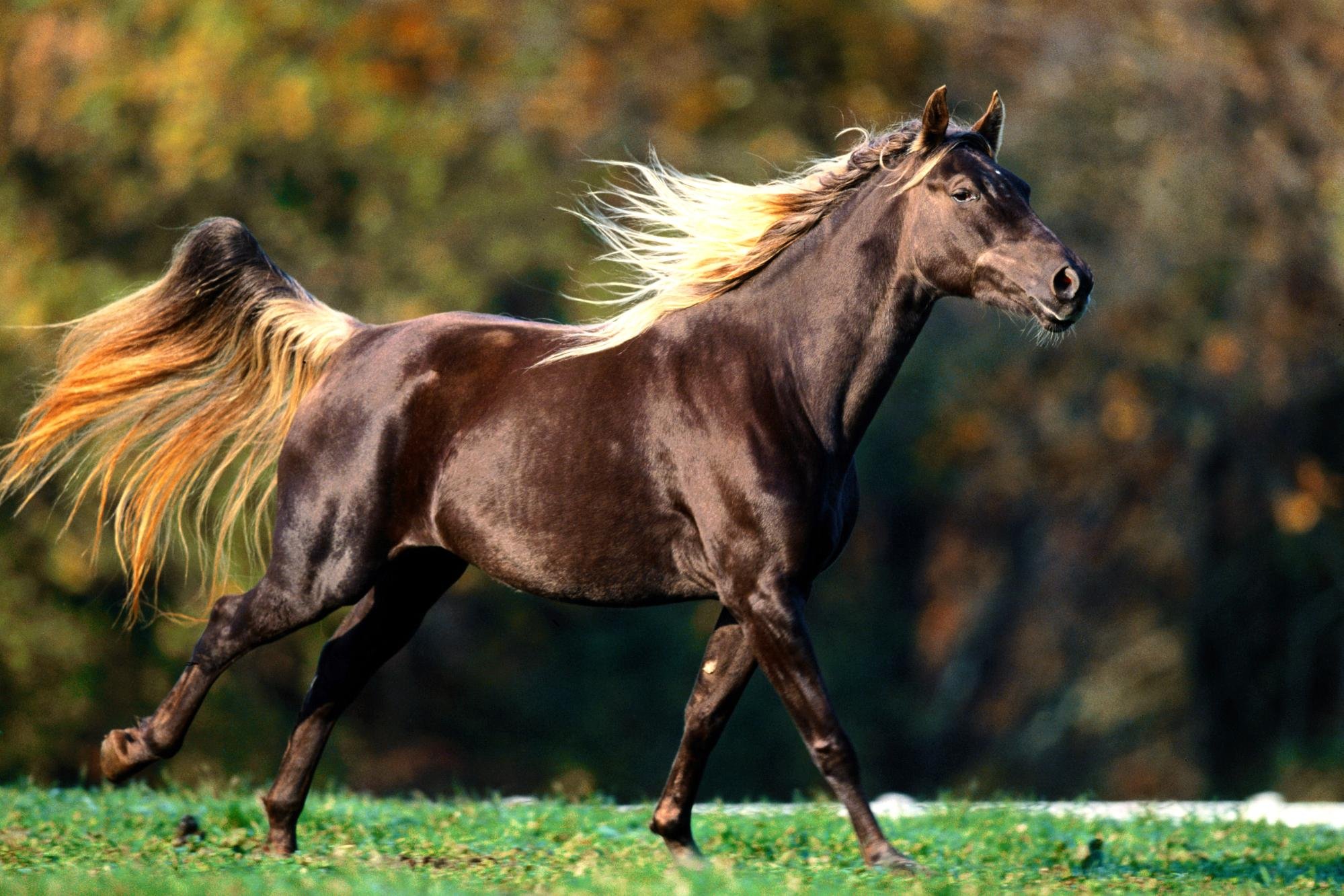 Вороная лошадь с рыжей гривой