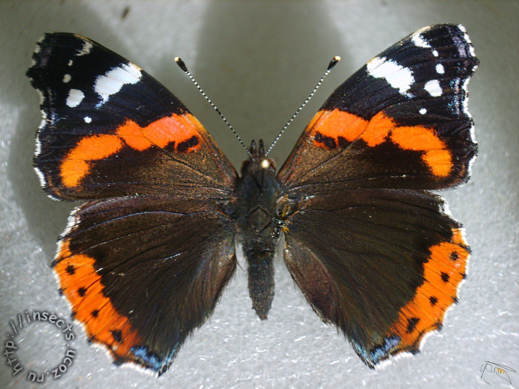 Бабочка Адмирал снизу