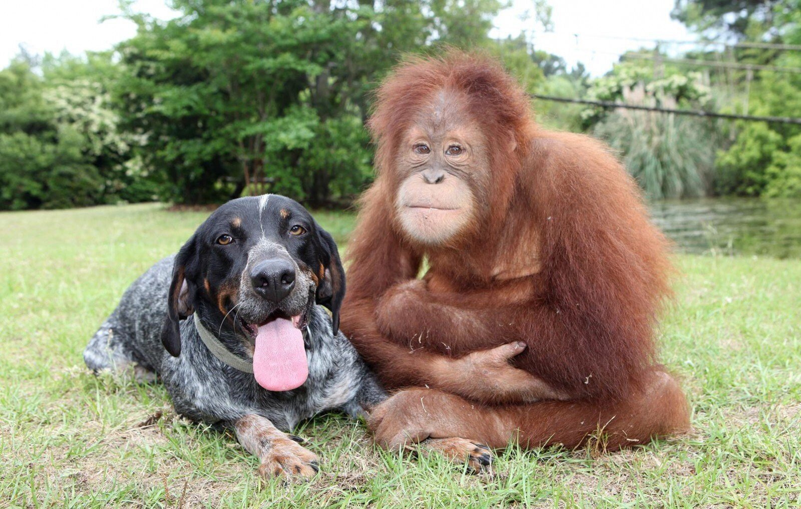 Орангутан Сурия и собака Роско