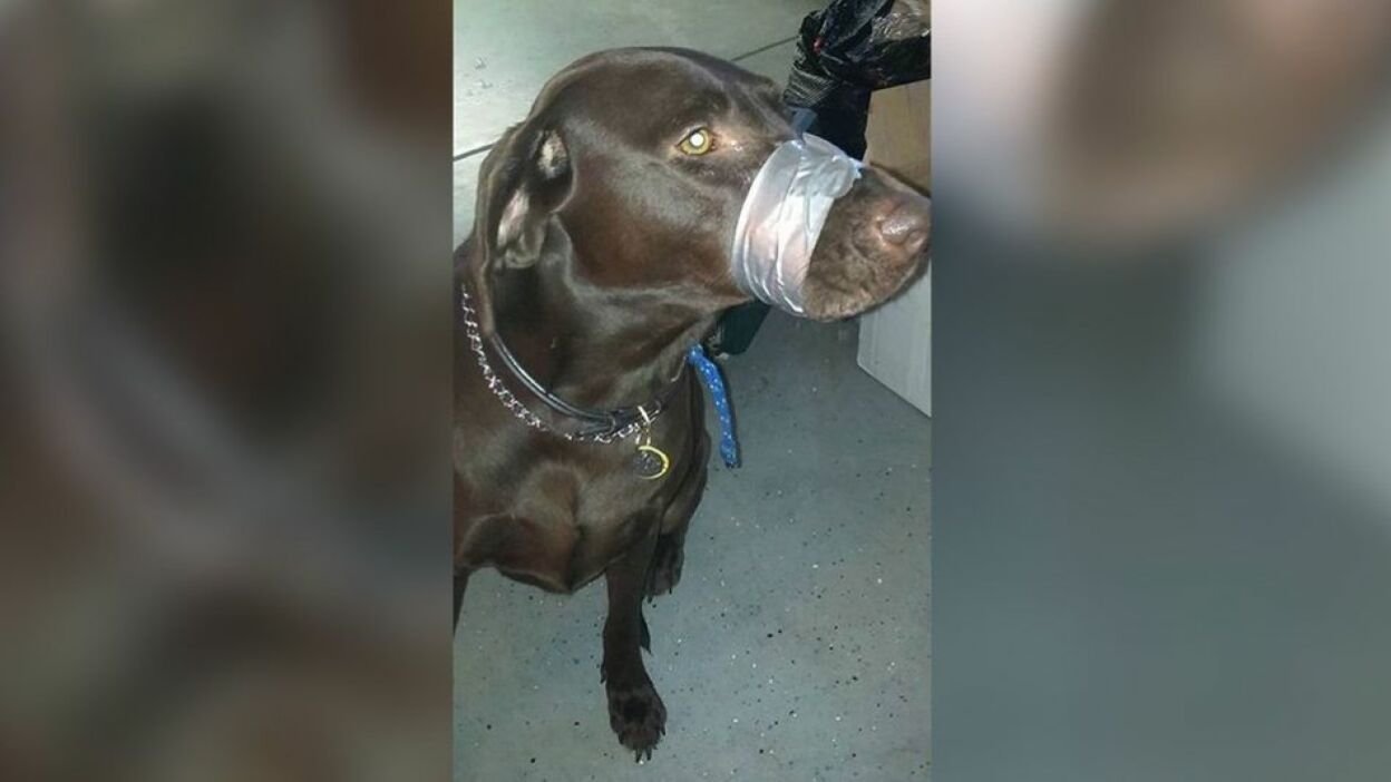 Собаке замотали морду скотчем