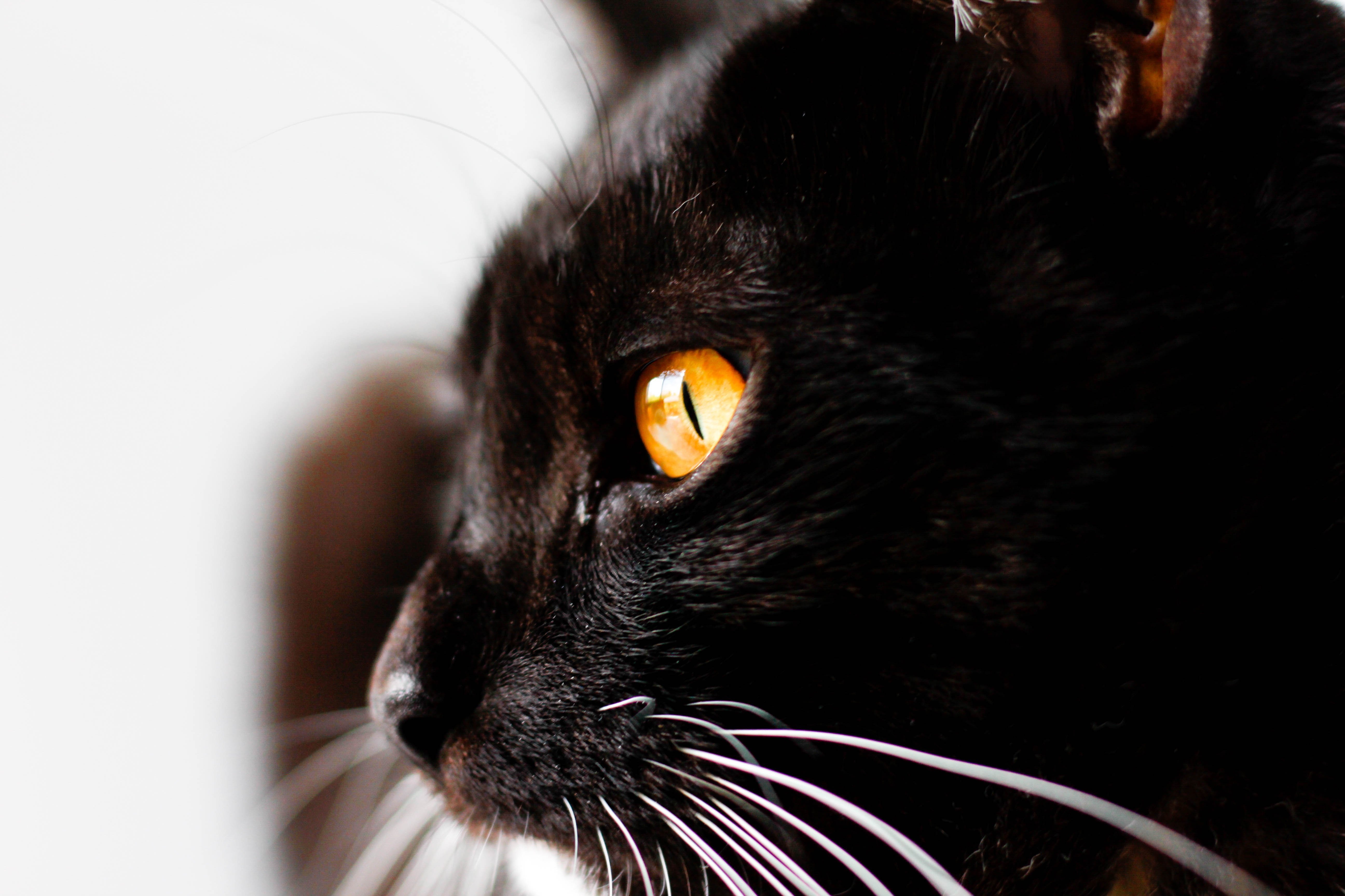 Черная кошка с карими глазами