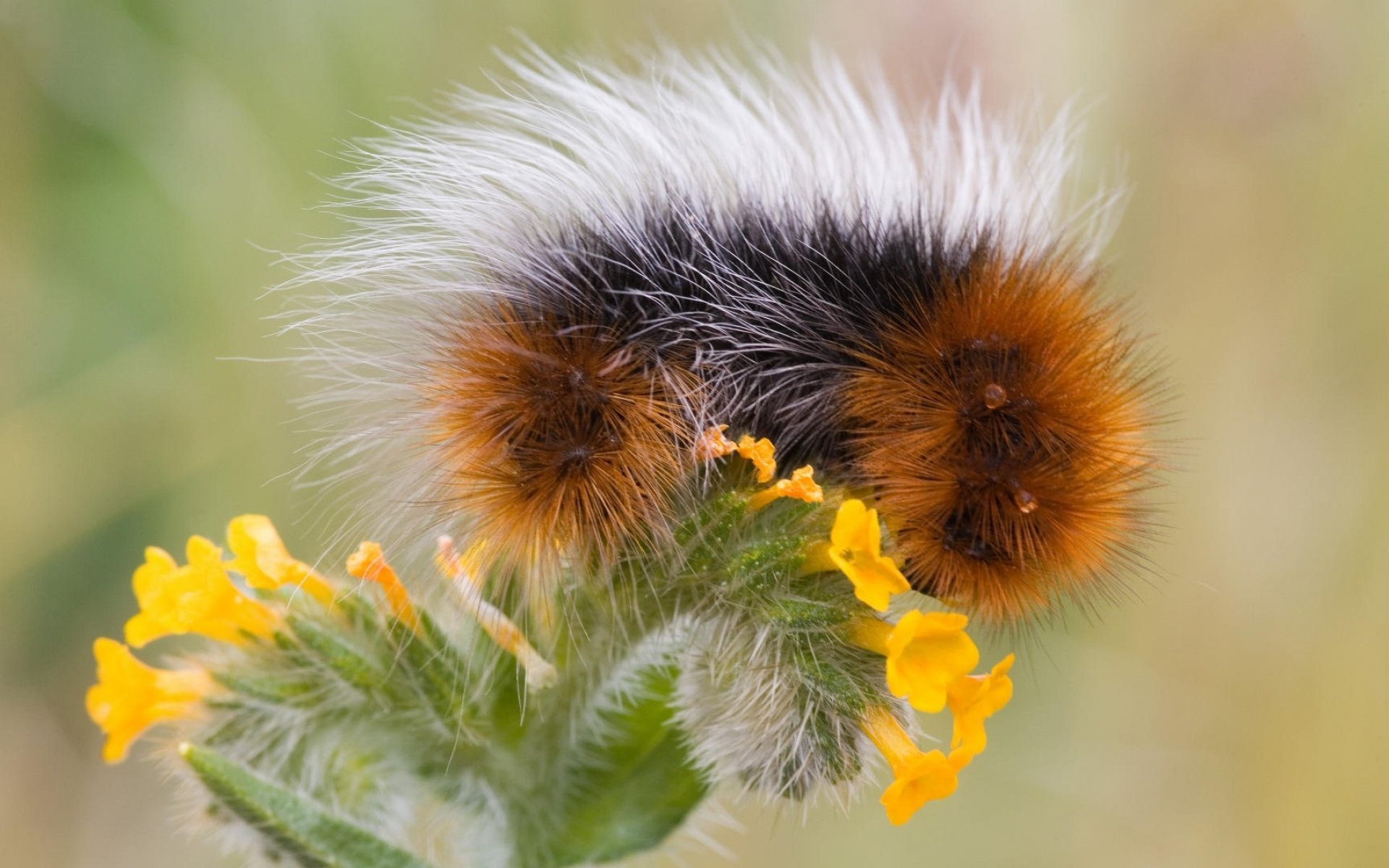 Желтая мохнатая гусеница