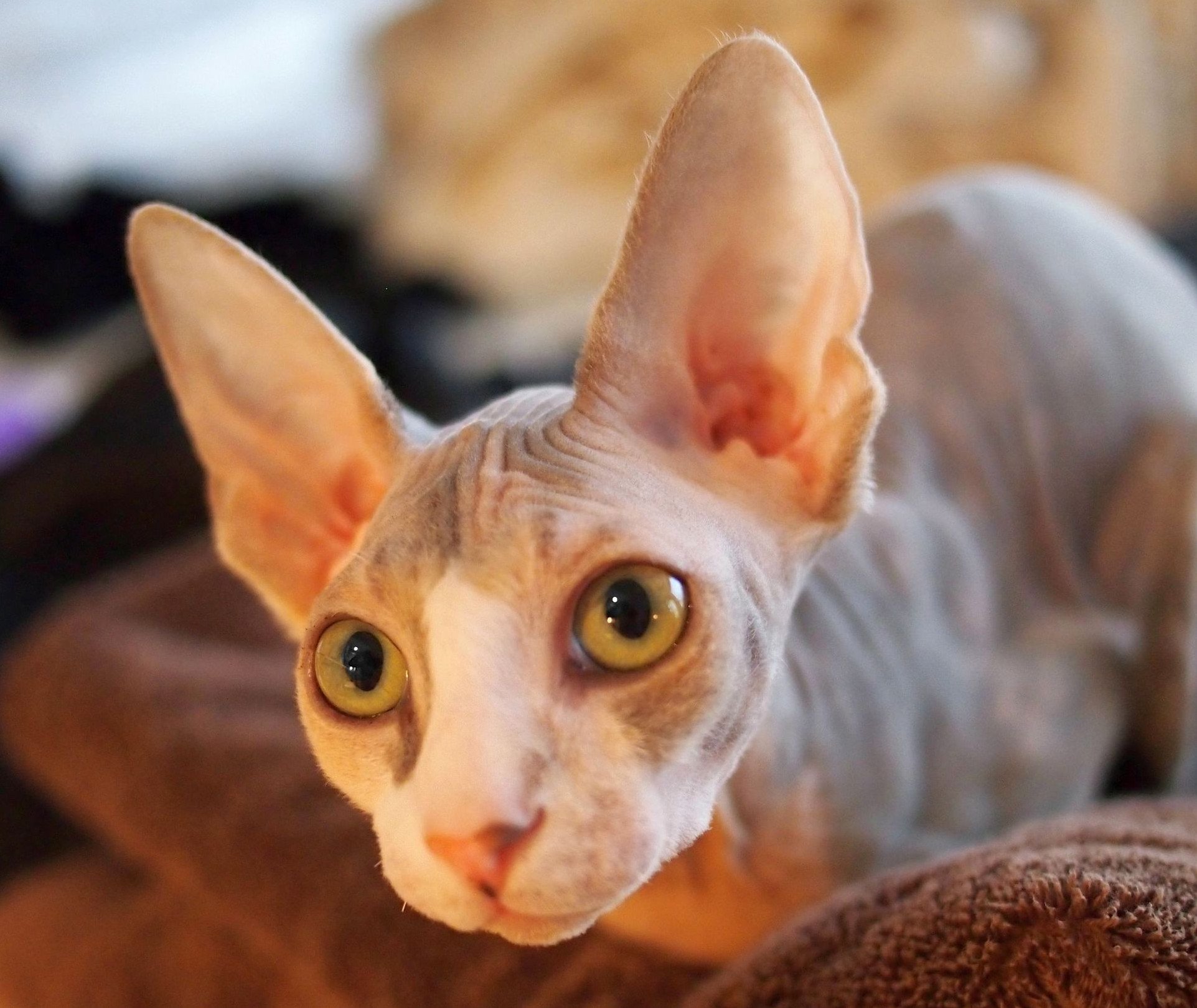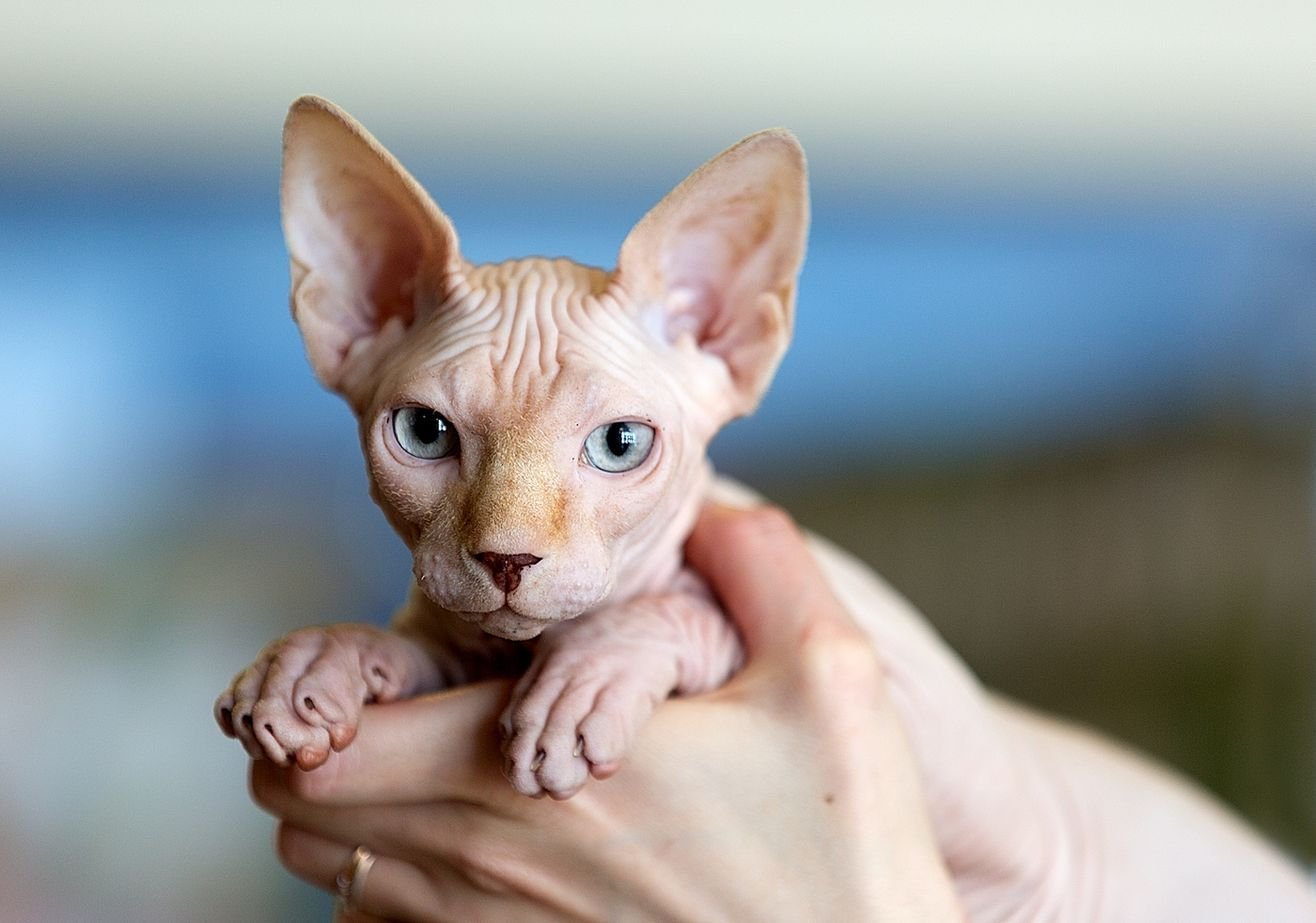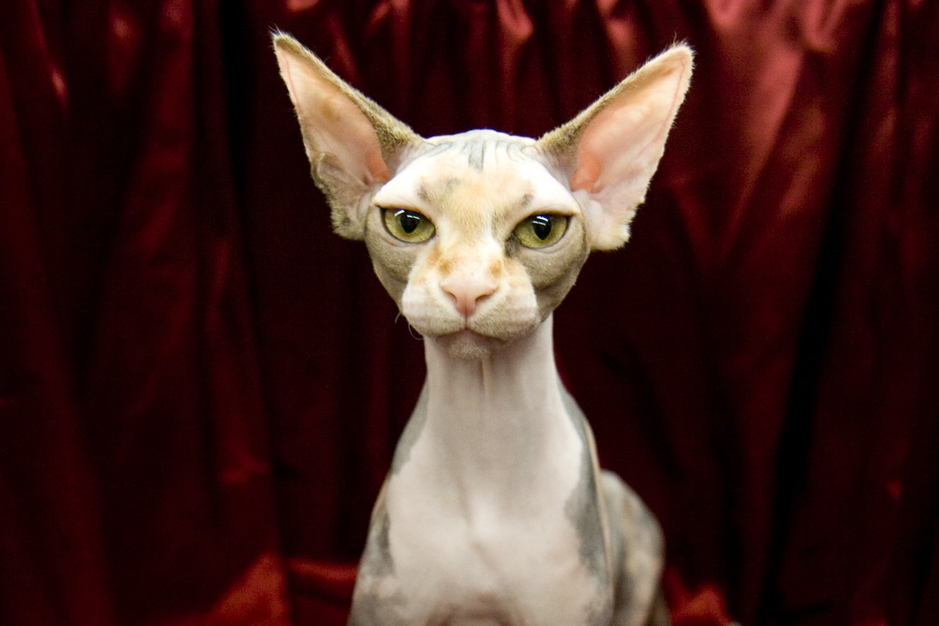 Лысый кот с большими ушами