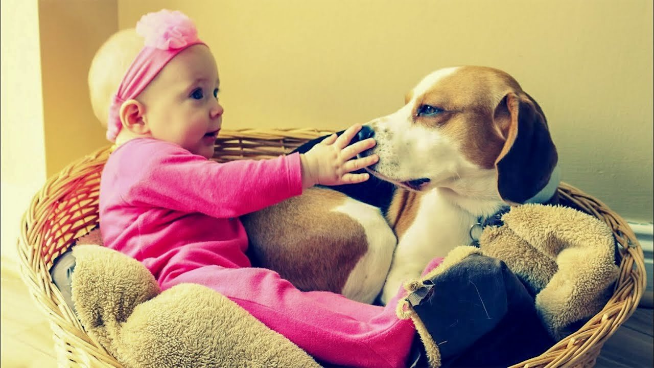 Бигль и новорожденный ребенок