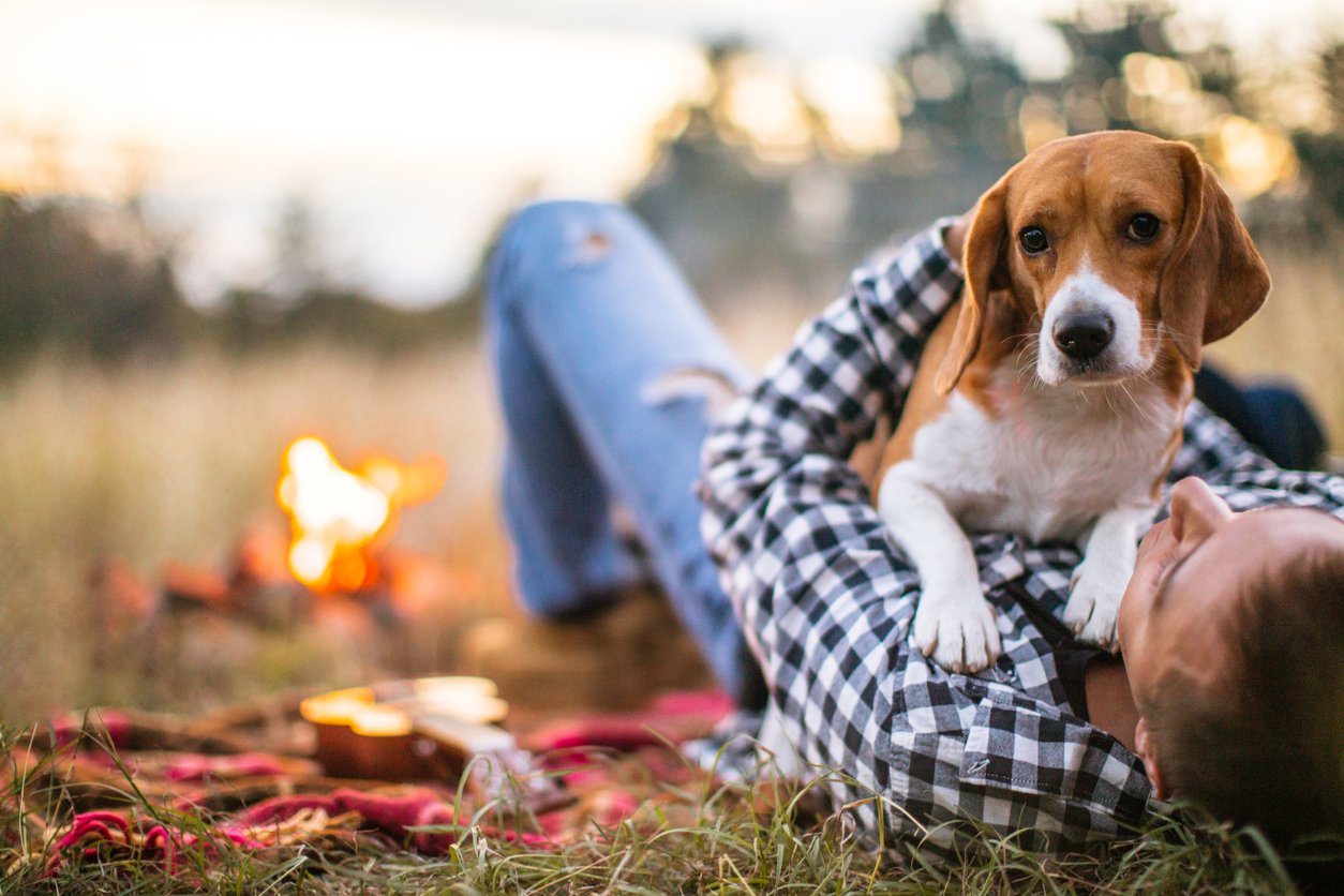 Бигль с красной банданой