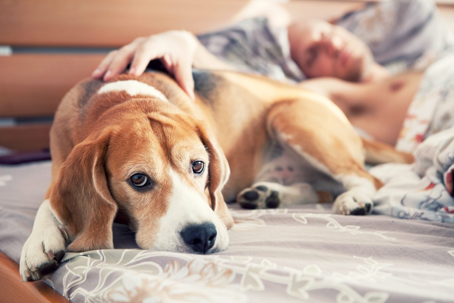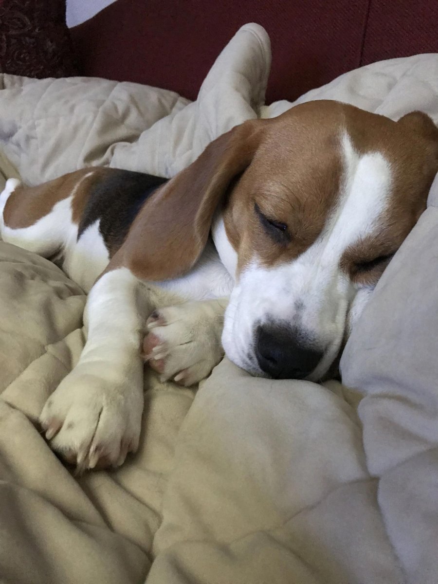 Бигль в кровати