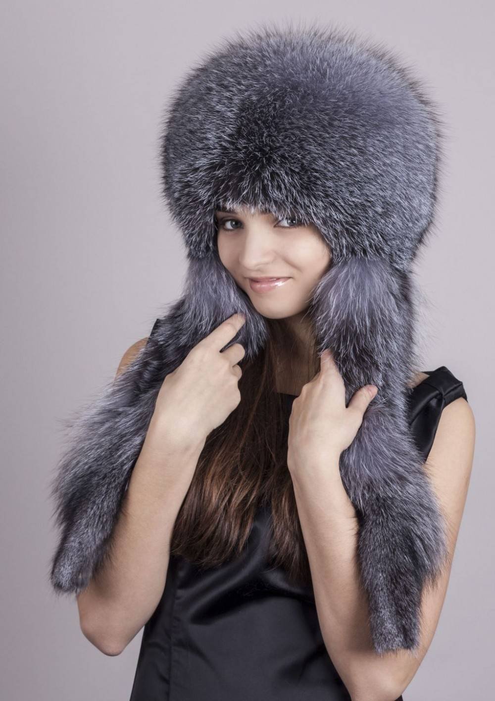 Меховая шапка с ушками женская
