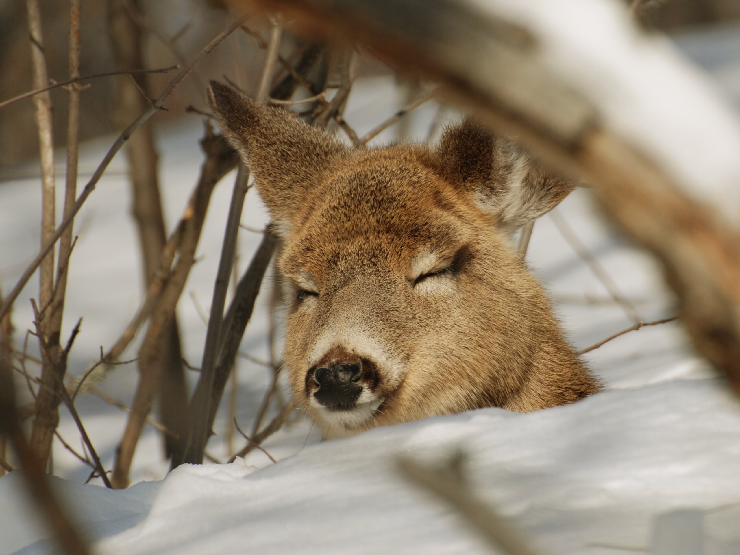 Олень спит зимой