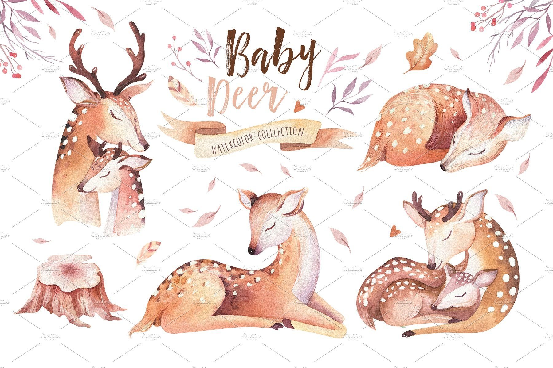Иллюстрации Boho животные акварели Олененок