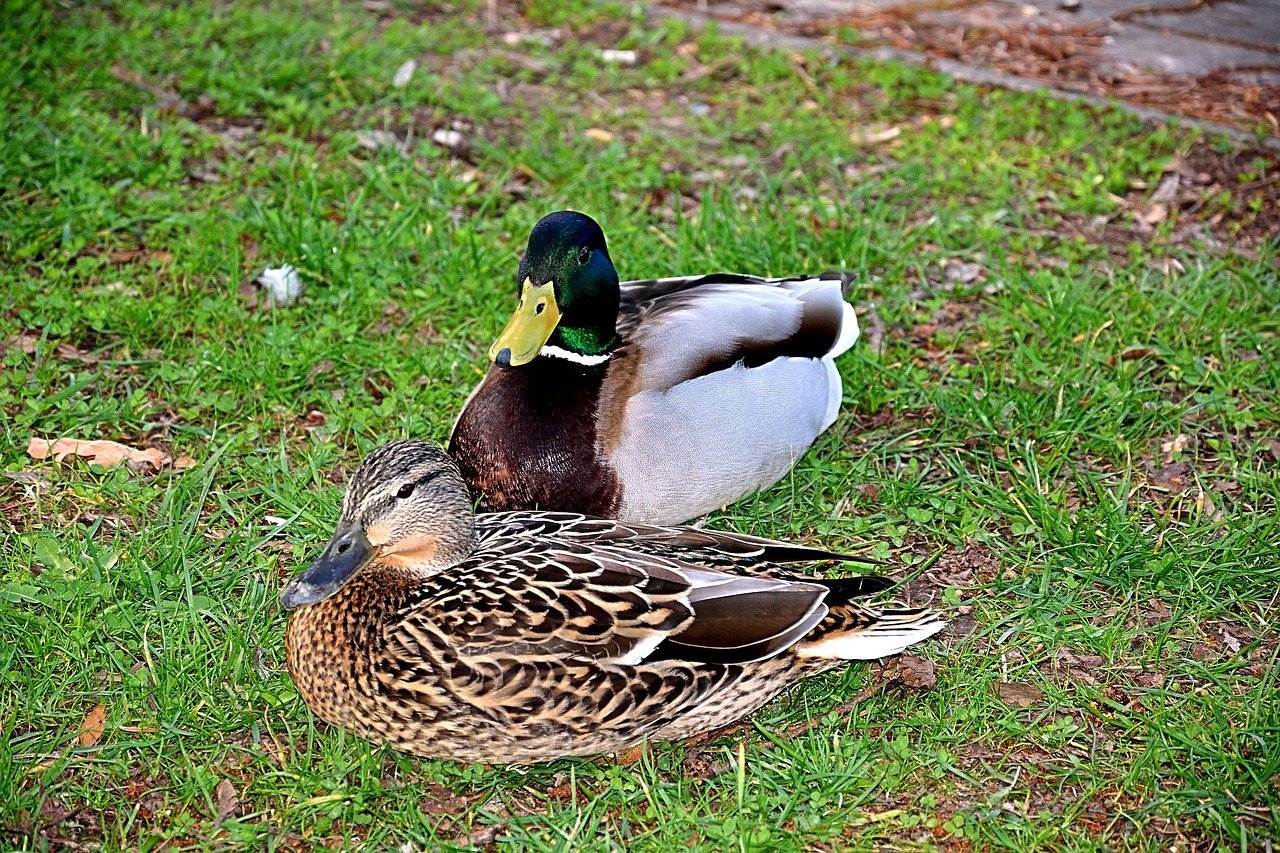 Утка селезень утята