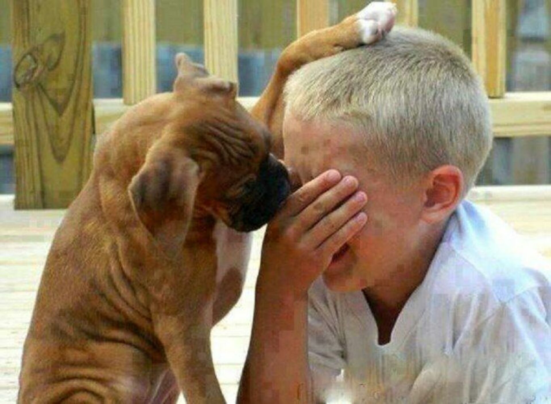 Улыбается через слезы пес