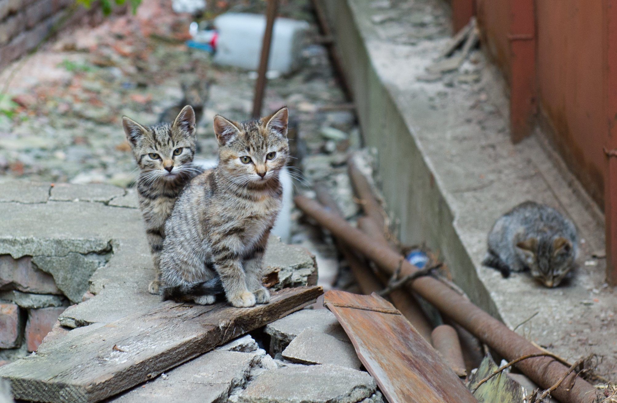 Бездомная кошка с котятами