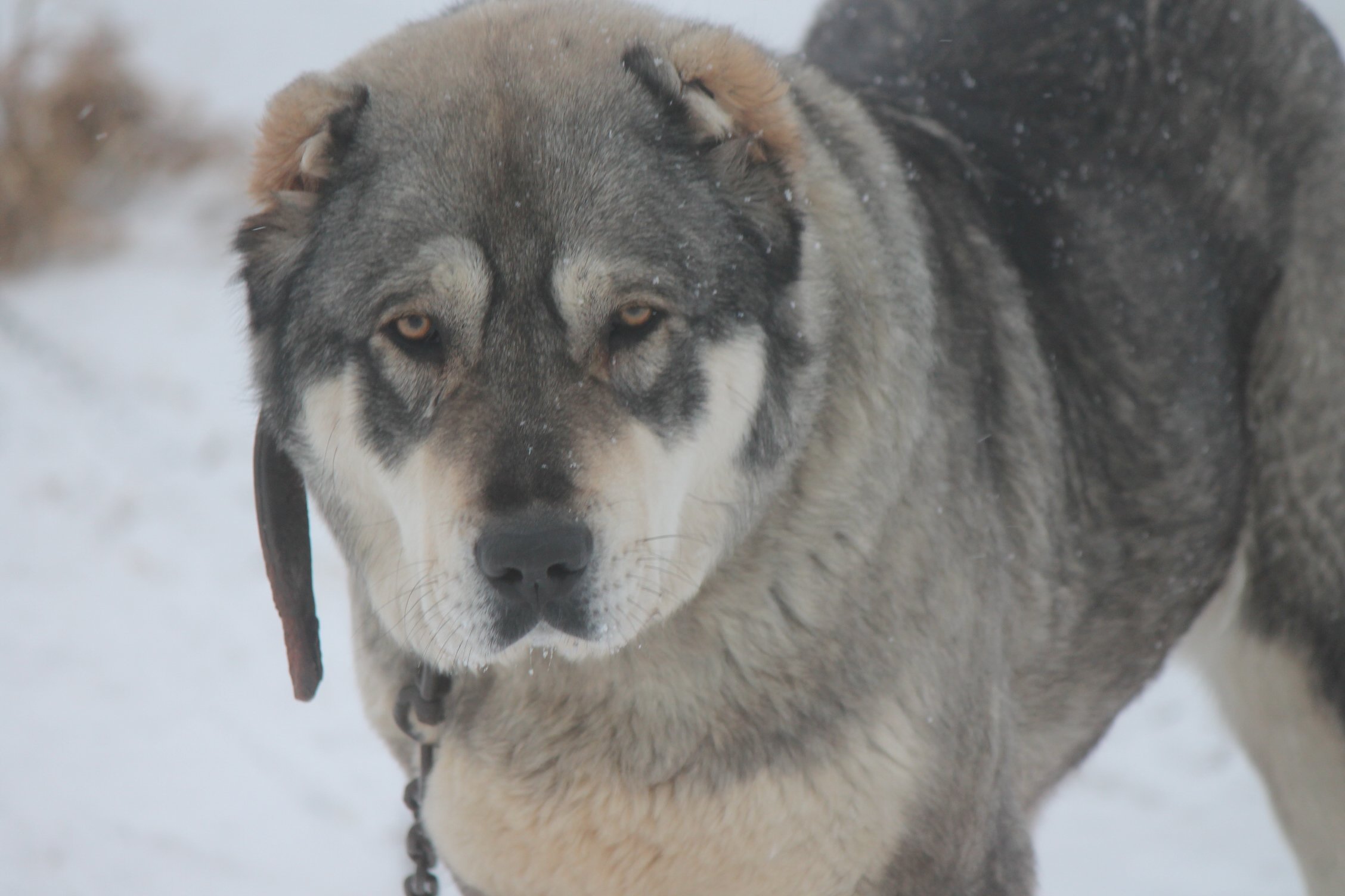 Метис хаски и кавказской овчарки