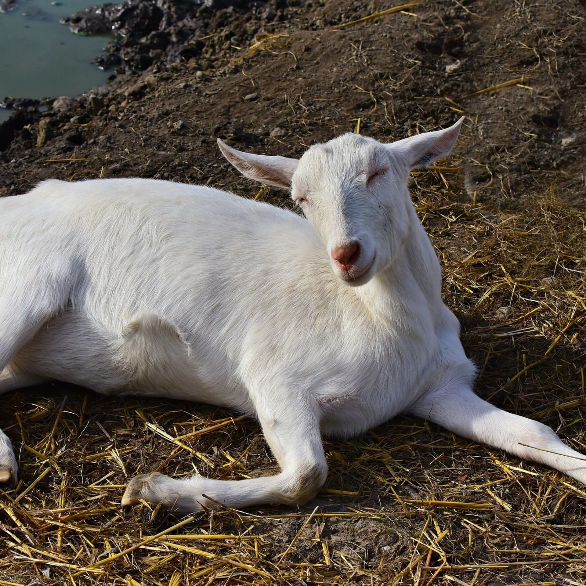 Коза лежит