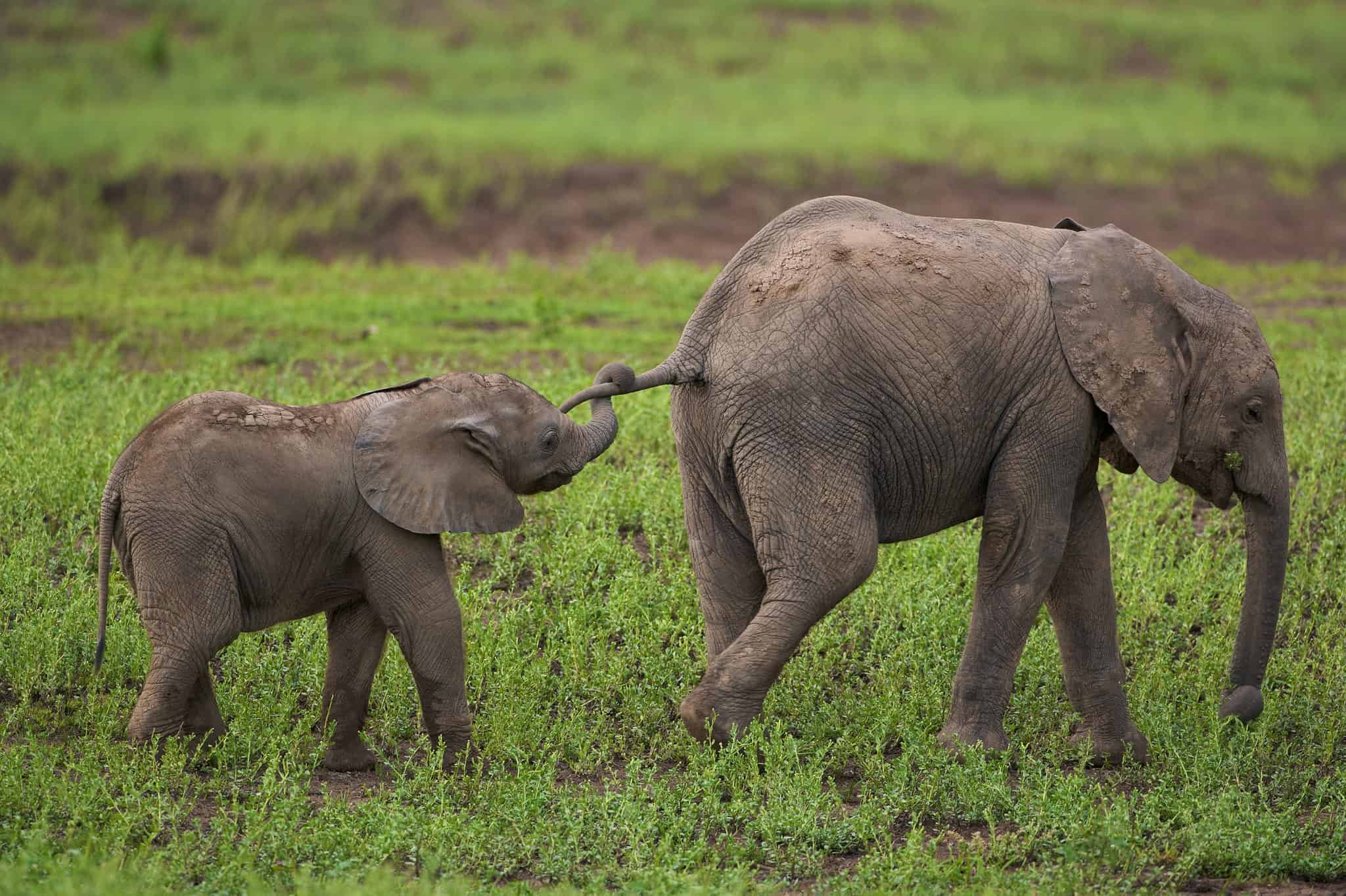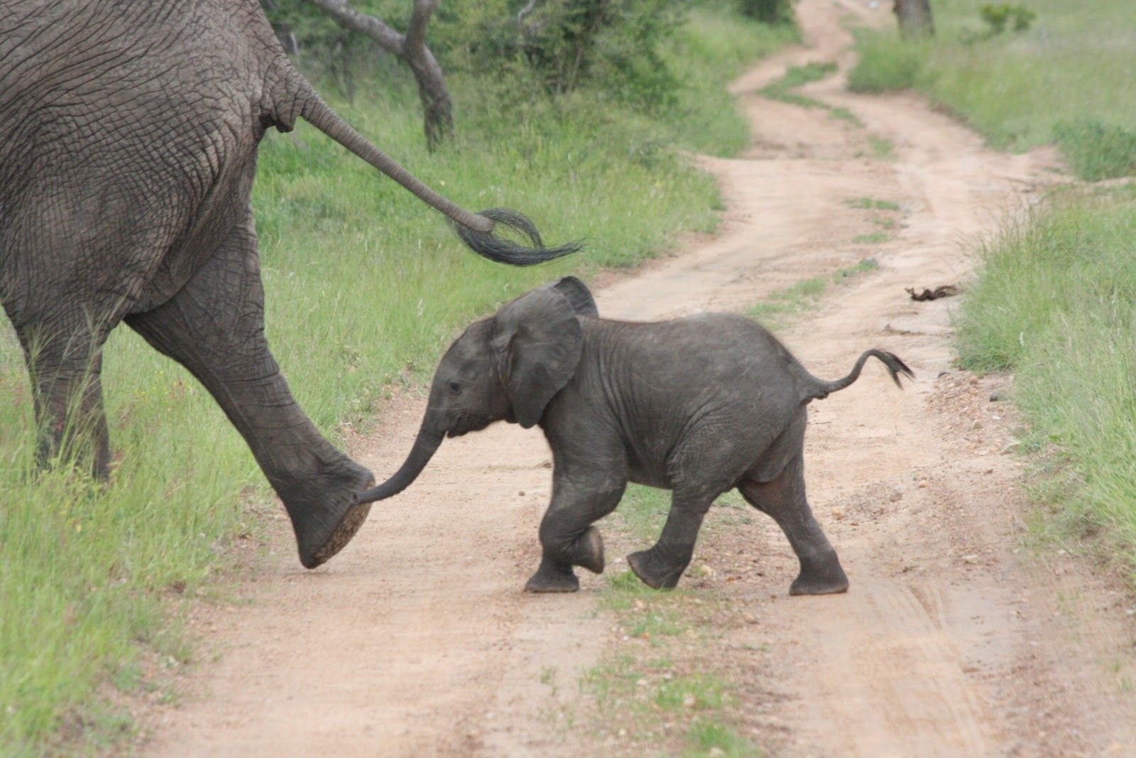Слоненок держится за хвост