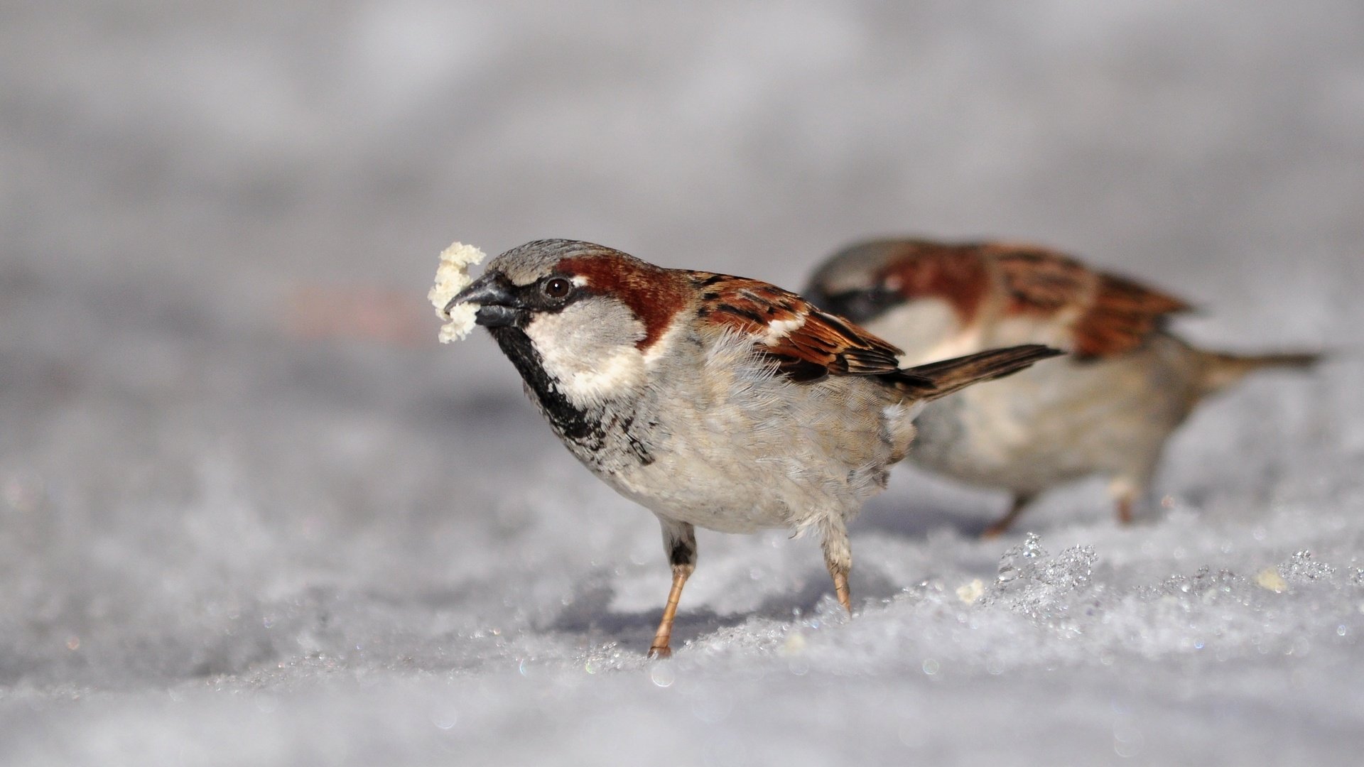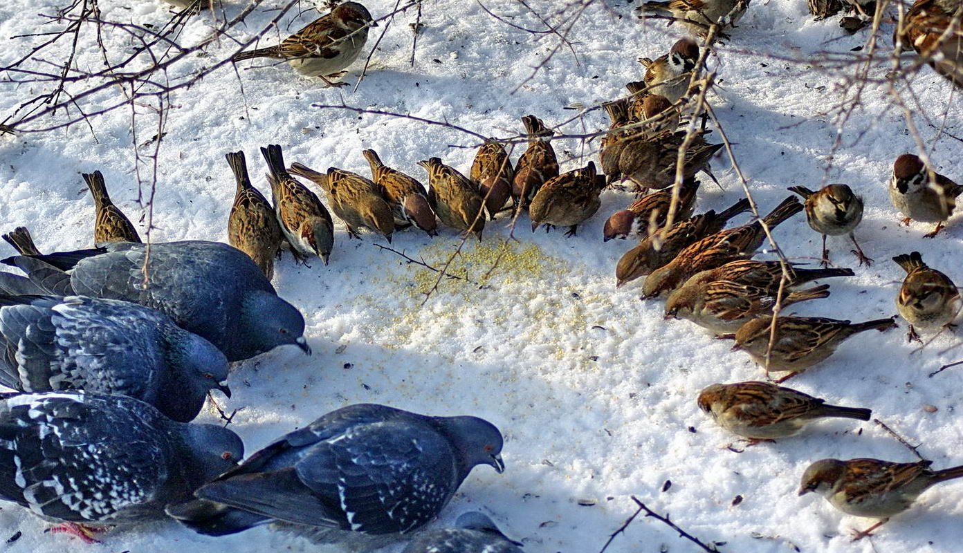 Воробьи и голуби зимой