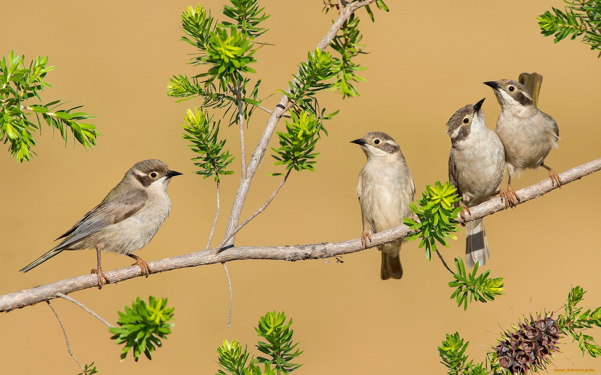 Много птиц на ветке